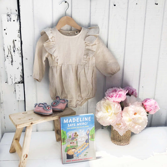 Gabriella Long Sleeve Linen Romper-Light Oat
