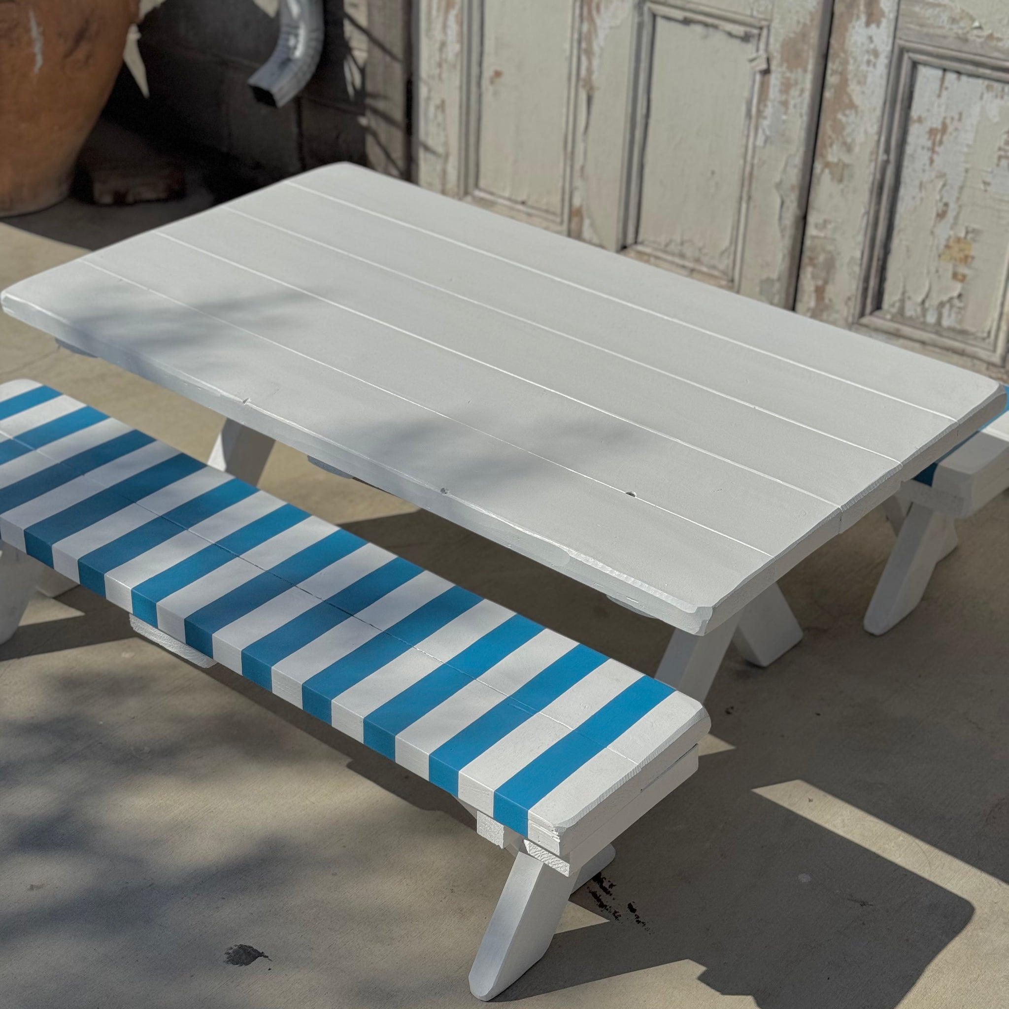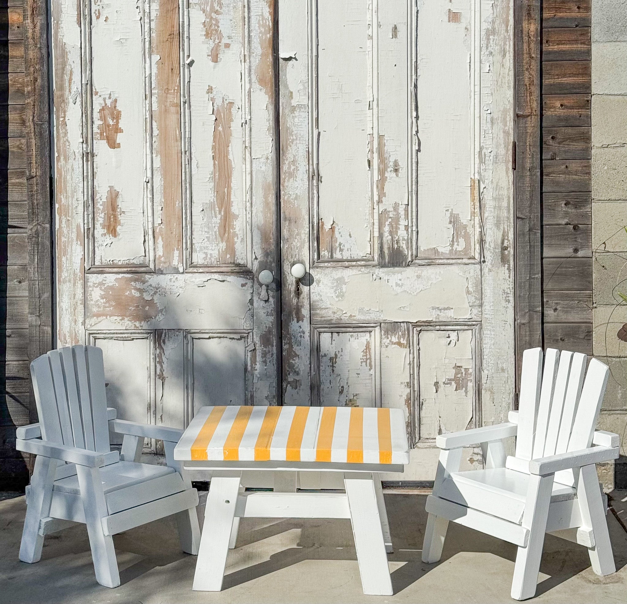 Make outdoor time for the kiddos extra snappy with our new Parton Collection, colorful takes on our kid's patio furniture. Choose from the picnic table and benches, or the square table and chairs.