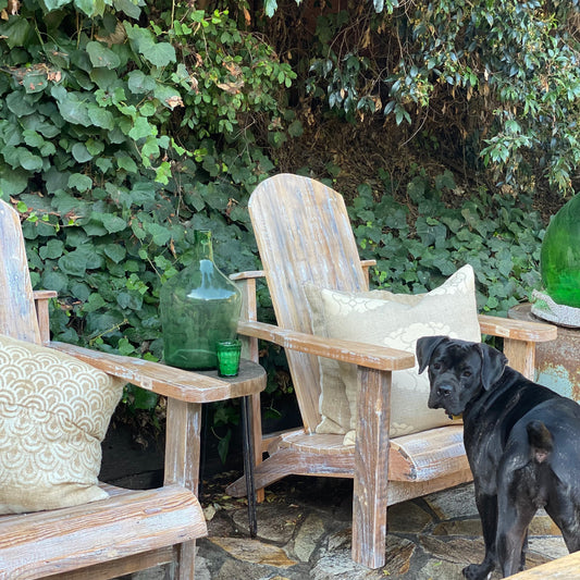 All of our outdoor furniture is coated with a weatherproof finish to protect the wood and paint from the elements.
