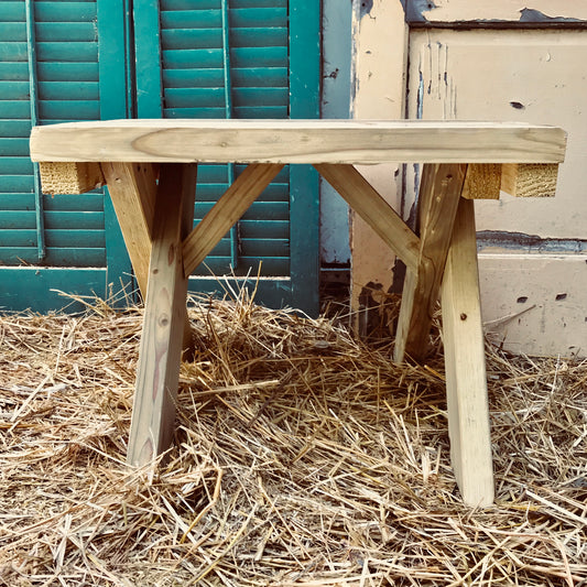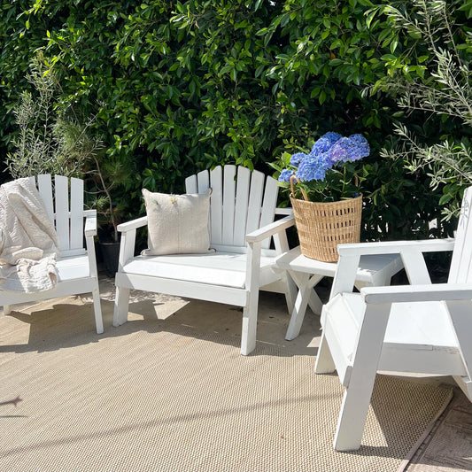All of our outdoor furniture is coated with a weatherproof finish to protect the wood and paint from the elements.