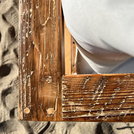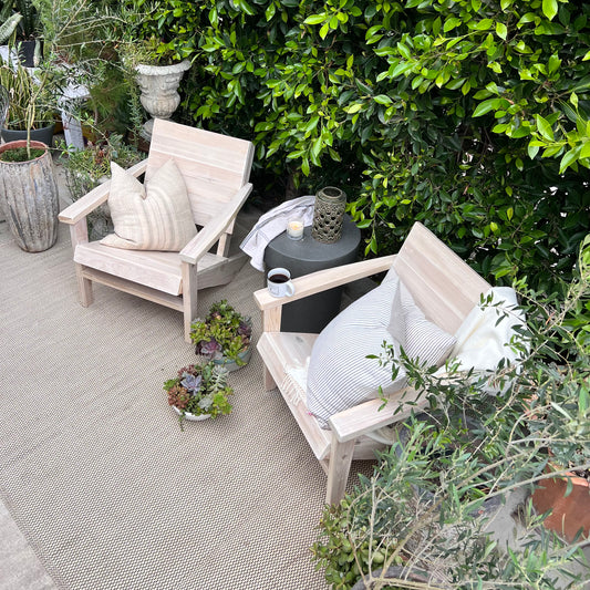 All of our outdoor furniture is coated with a weatherproof finish to protect the wood and paint from the elements.