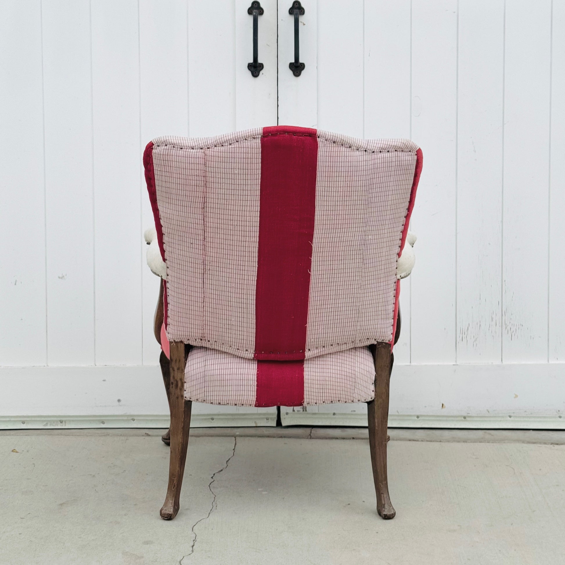 Upholstered with a vintage French bedspread, she's proof that, with age comes innate coolness...