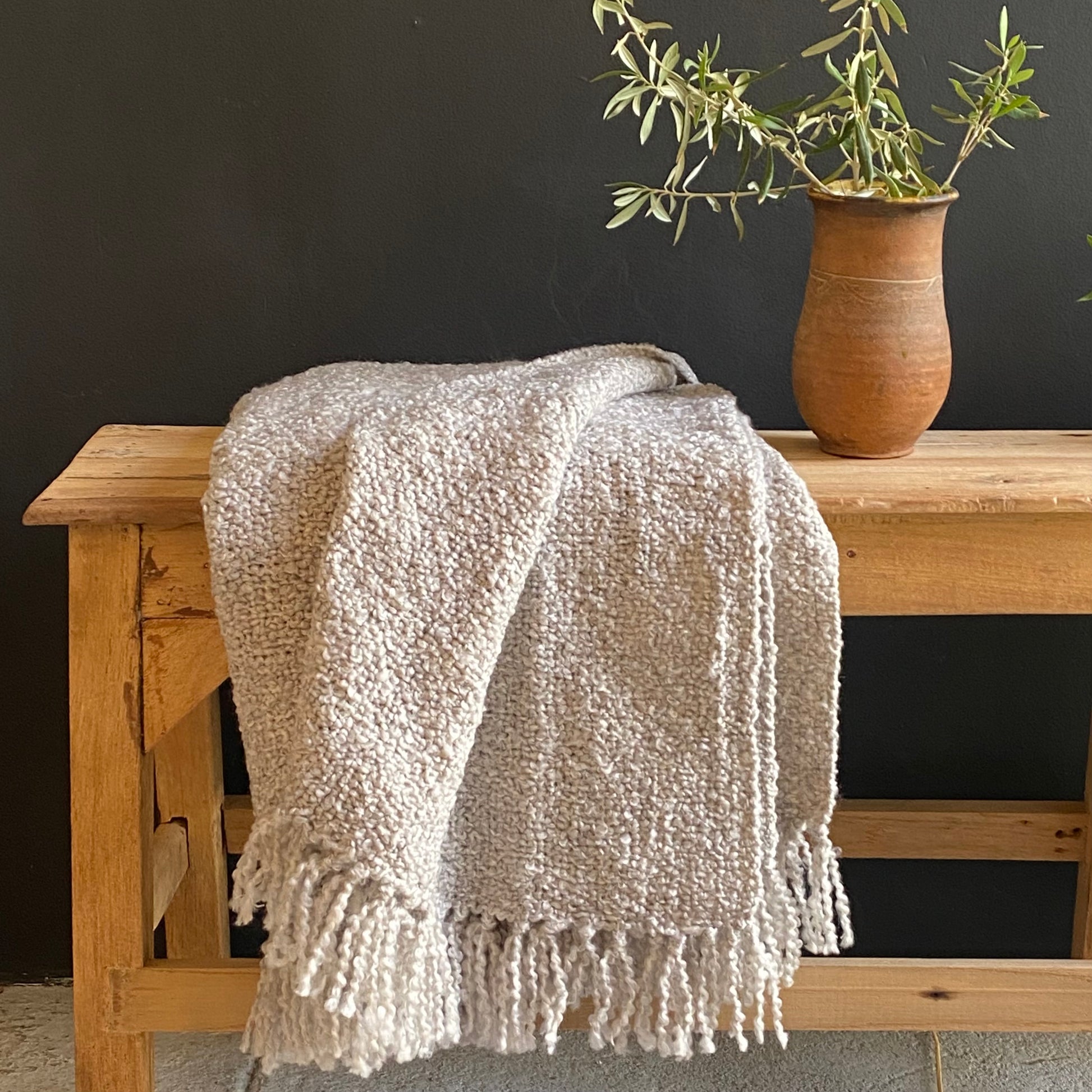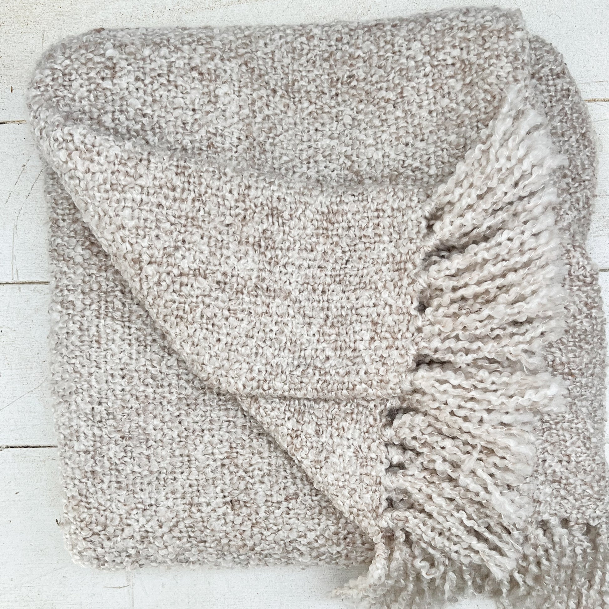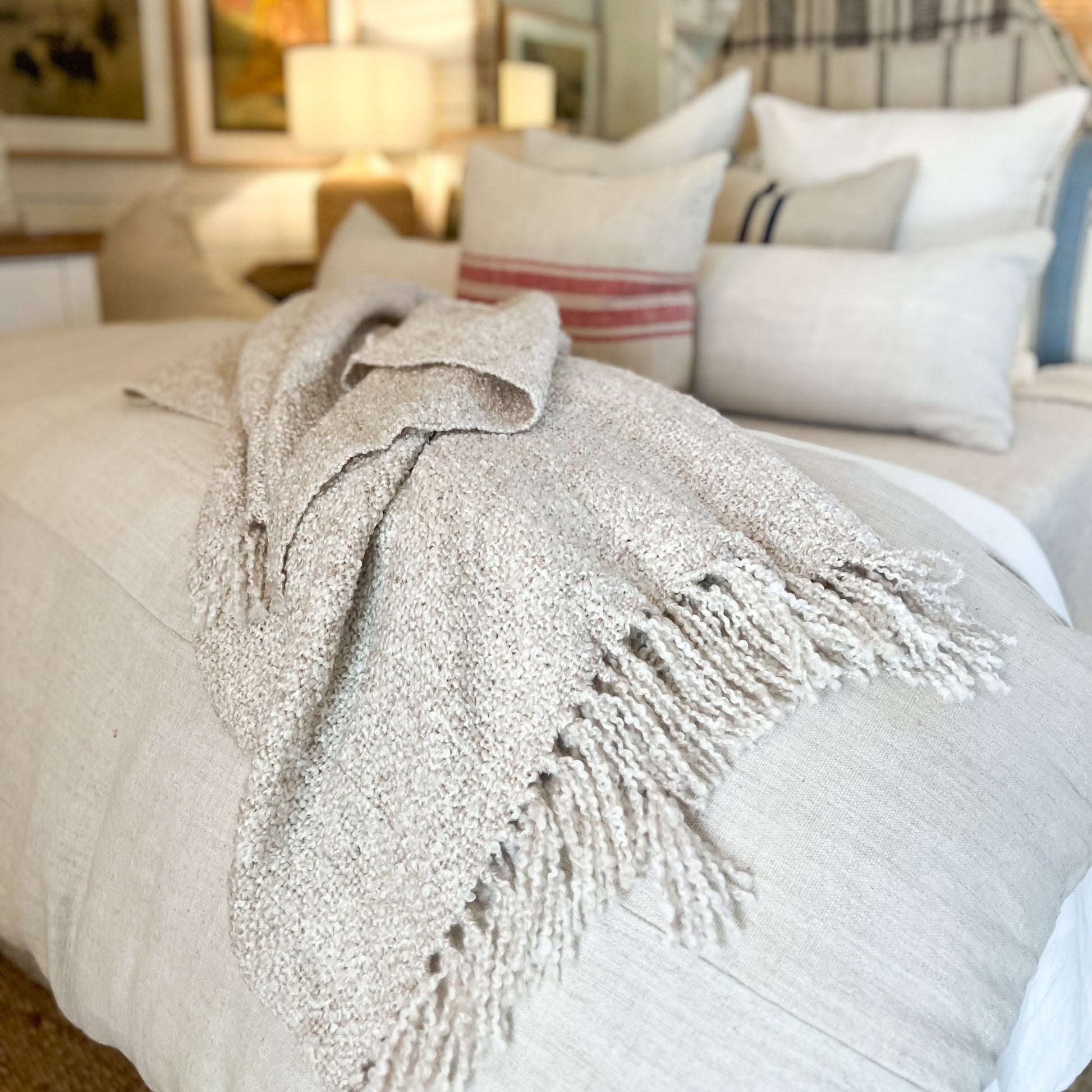 Never mind the twilight chill, snuggle up on the porch or patio wrapped in the generous embrace of this bouclé marled weave throw. Its nubby texture and easy-care countenance belie a surprisingly soft and inviting feel.