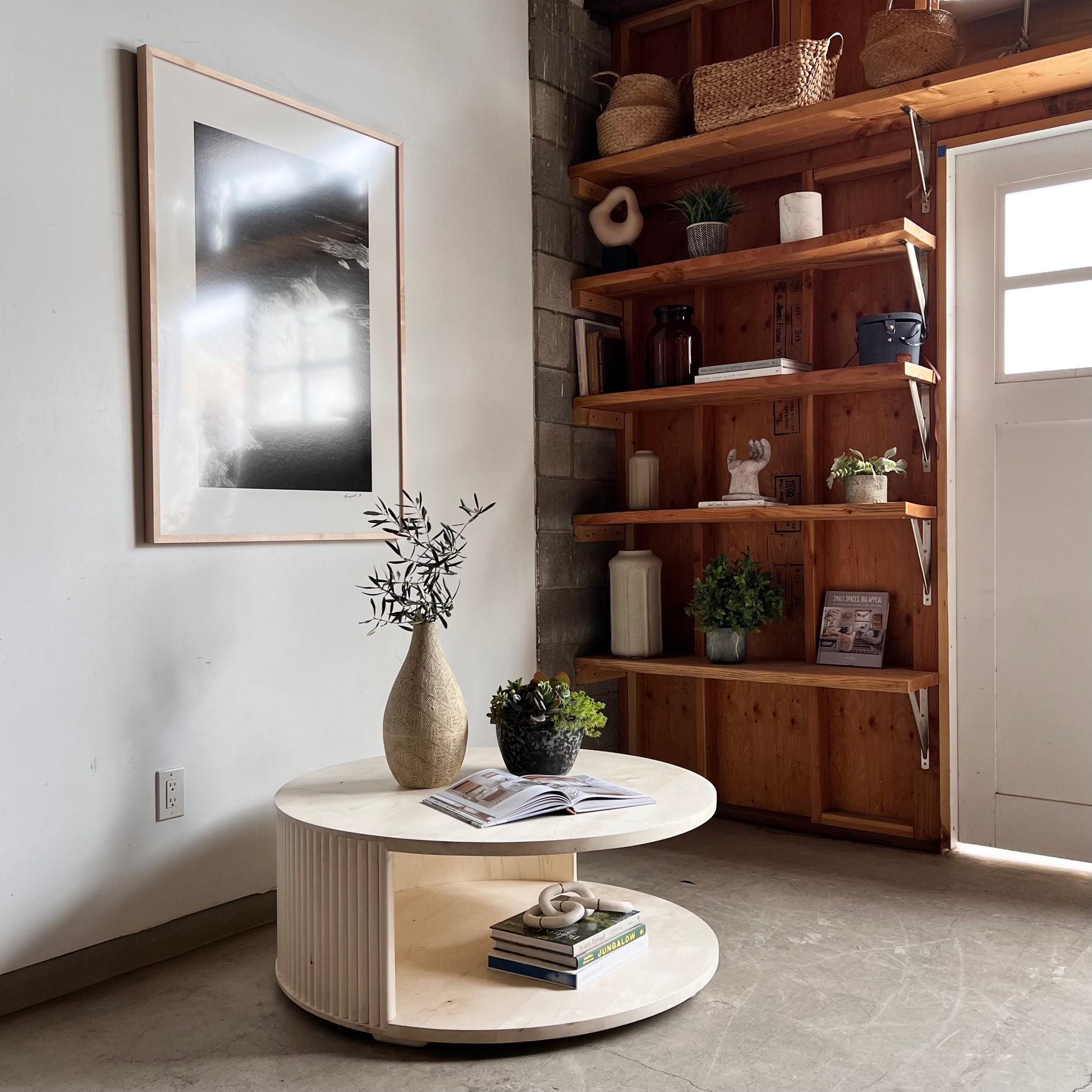 Open design with fluted wall makes this coffee table our favorite recent production!