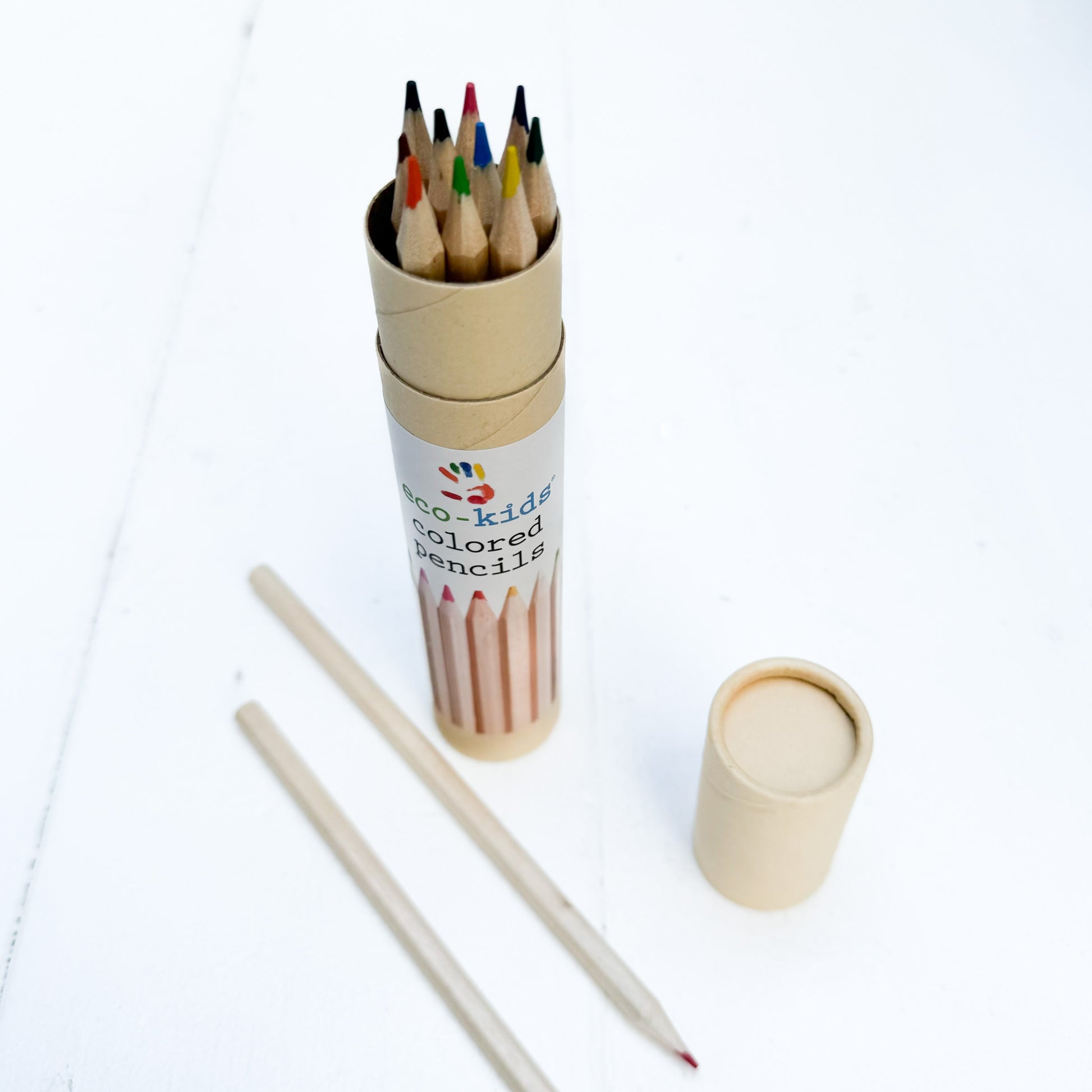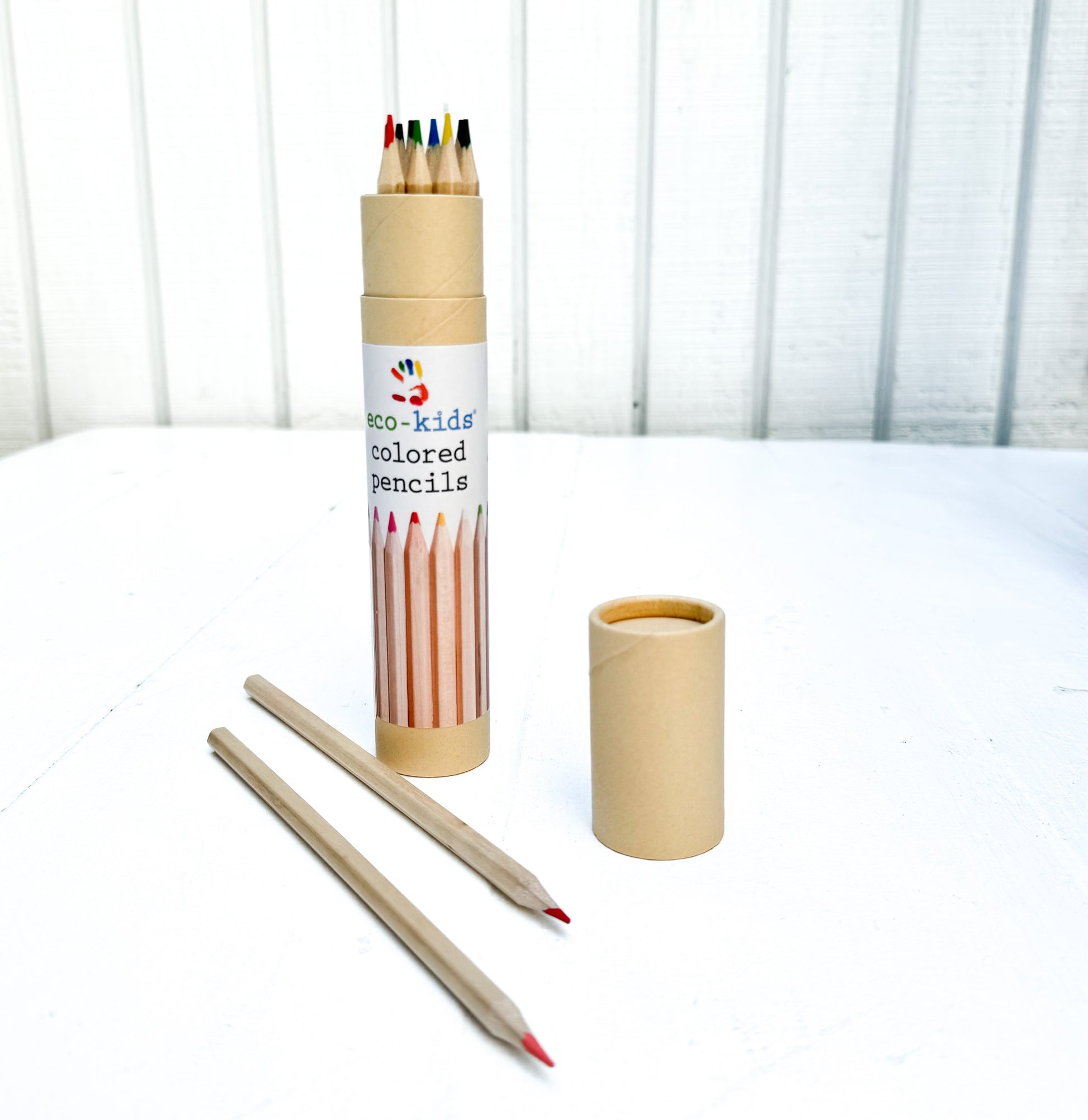 An eco friendly tube full of colored pencils for playtime, art time and travel time. Set of 12 colored pencils.