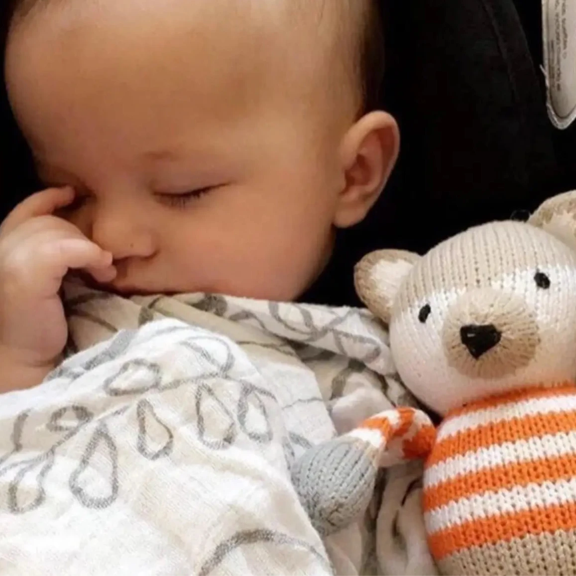 Our Rattle Buddy was hand-knit at an artisanal women's collaborative in Peru using G.O.T.S. certified organic cotton yarn with a phthalate-free rattle inside.