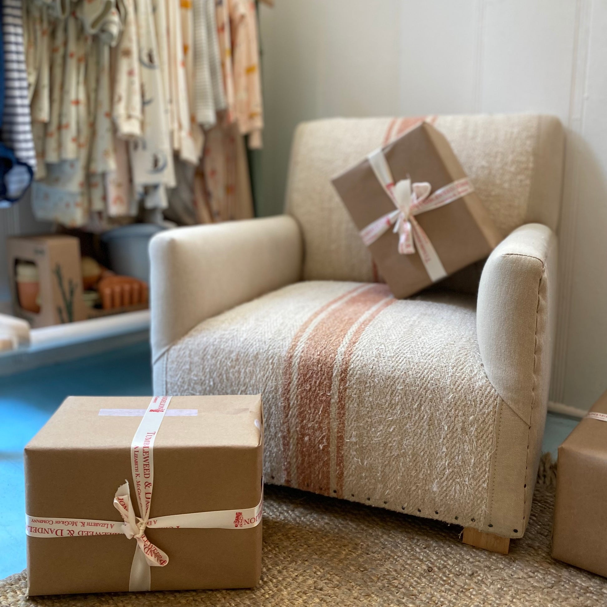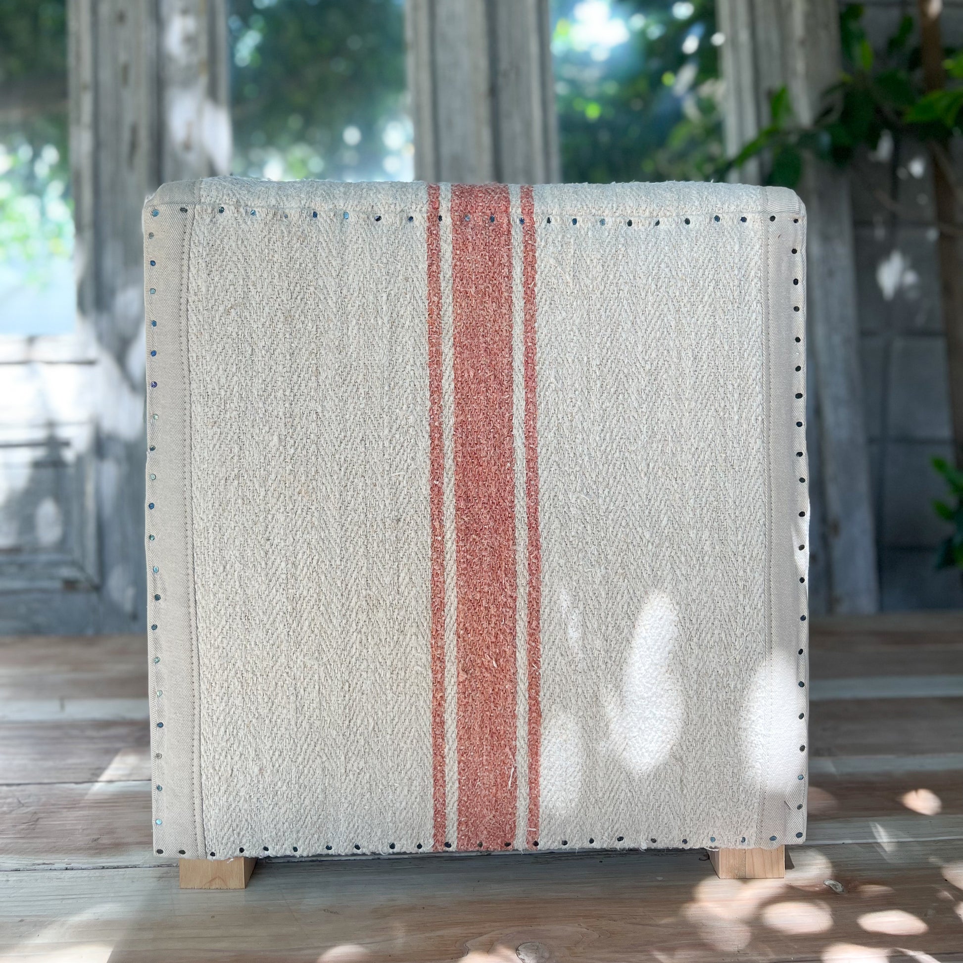 Keep your kiddos in cool vintage style with this feed sack upholstered chair...great to snuggle up in with their favorite book...