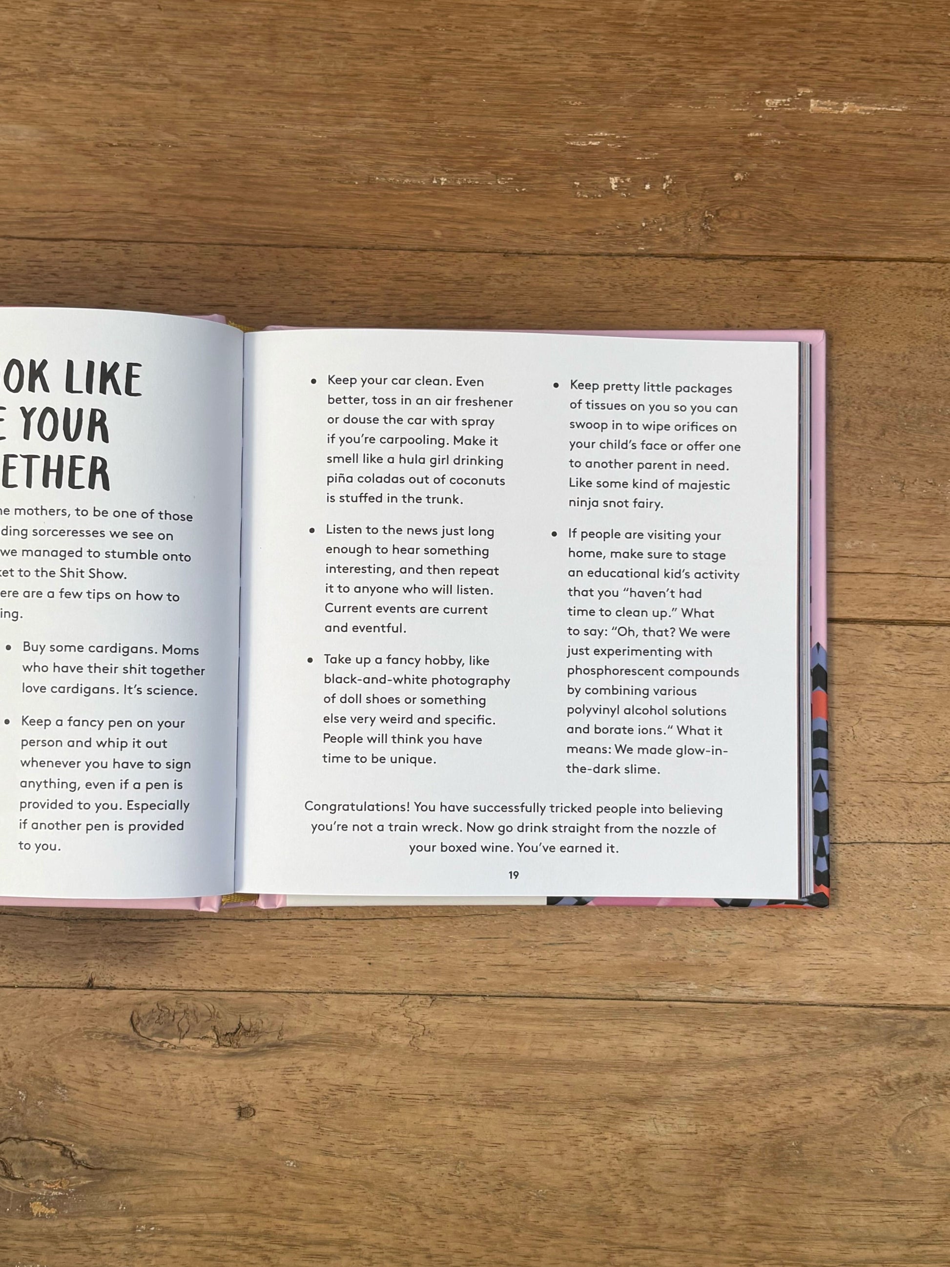 There are real-talk quotes, helpful lists (such as "How to Look Like You Have Your Act Together"), "mom-tivities," and quizzes, all delivered with a healthy dose of sarcasm. Packaged in a handy trim size with colorful illustrations throughout, Mommy Cusses is the perfect gift for moms and moms-to-be who need some comic relief.