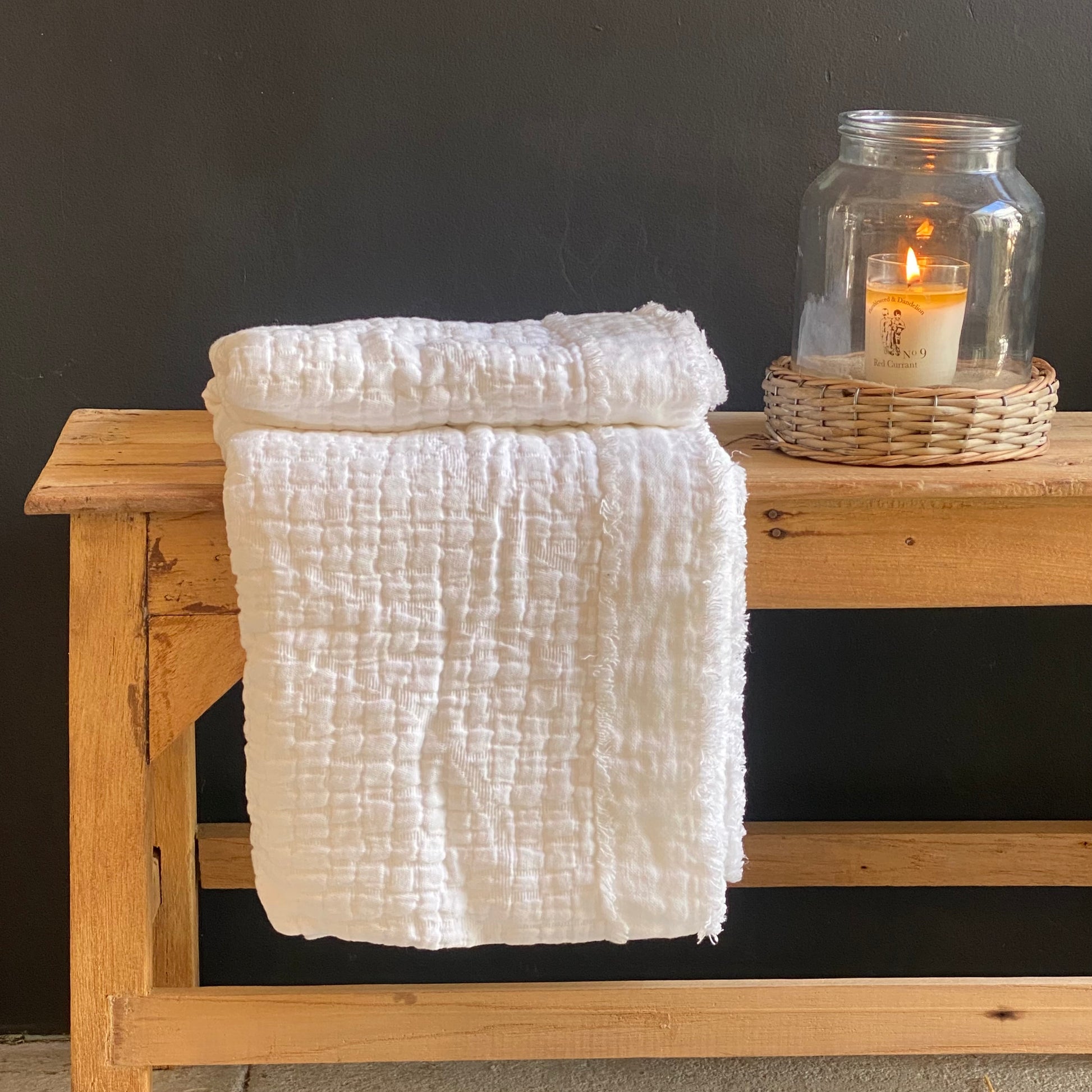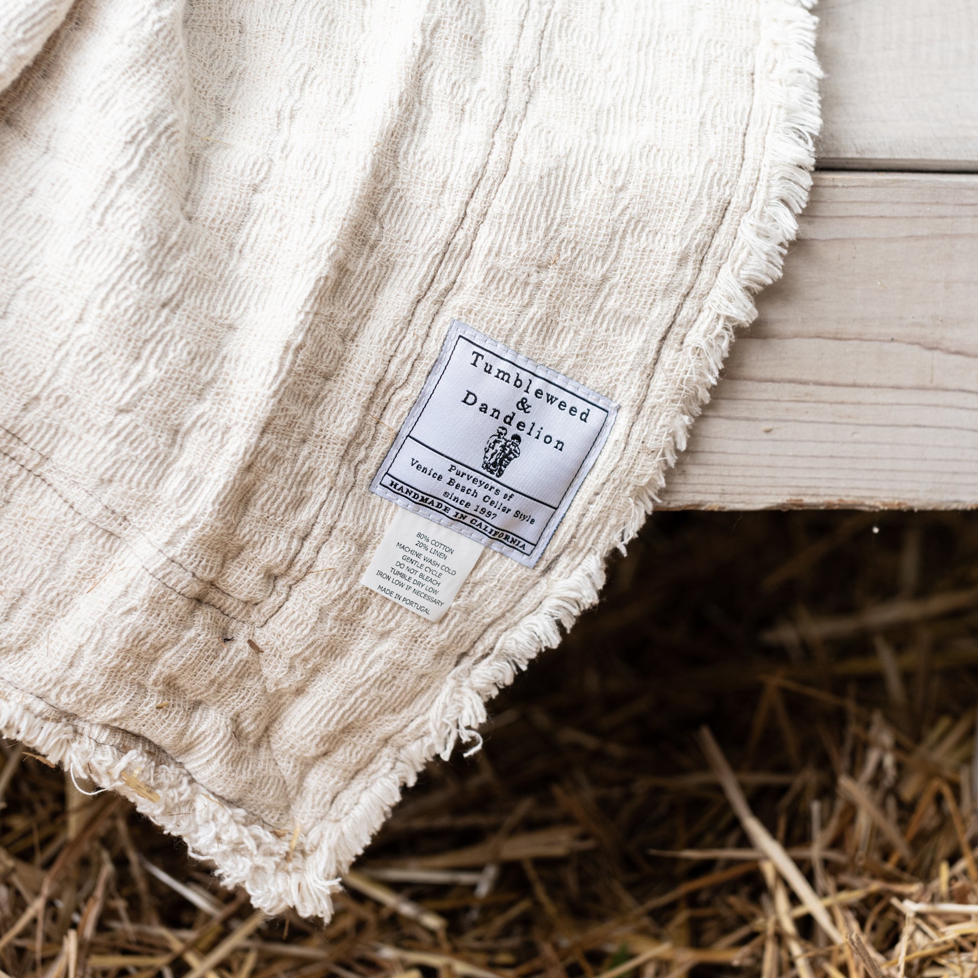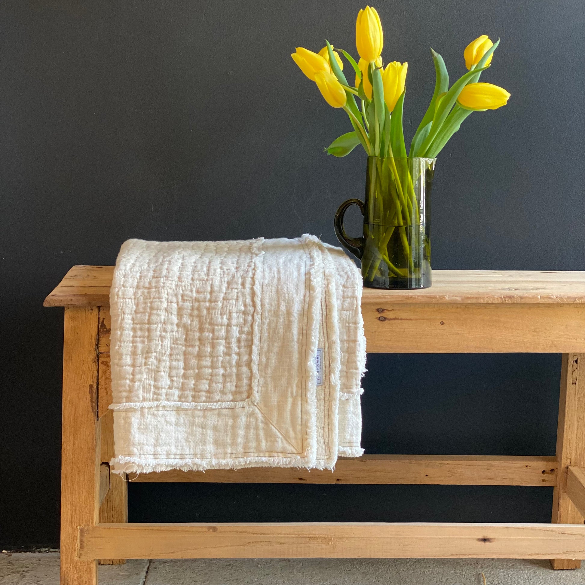 The Merci oversized throw has a grain like pattern finished with an application of raw linen at the outside edges. It is part of our Tumbleweed Merci Collection... The look is modern and a little industrial but always classic. They are finished with a stone washed process, which gives them stain resistant properties and makes them completely safe to wash at home. We recommend washing weekly in cool water and in your dryer at low heat.