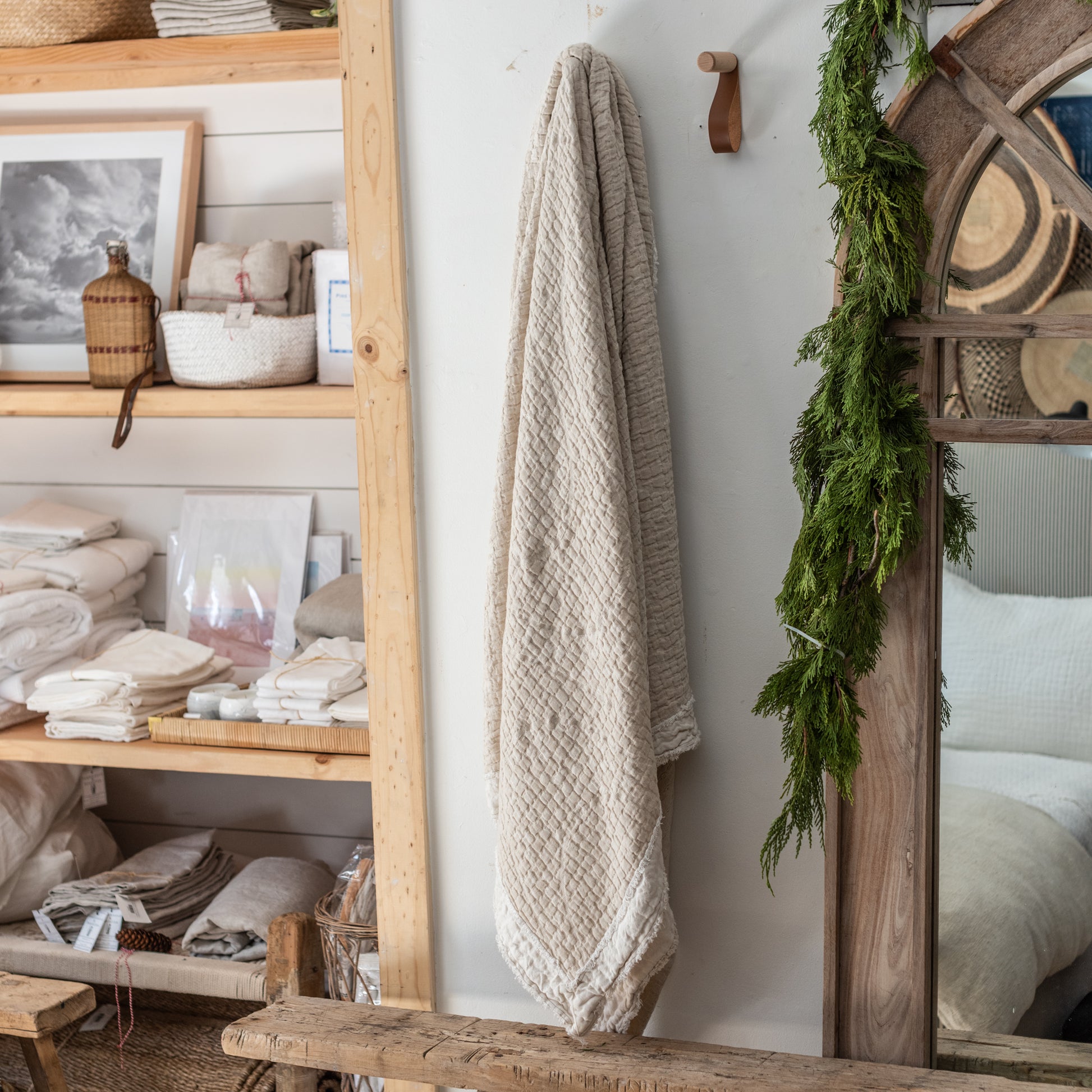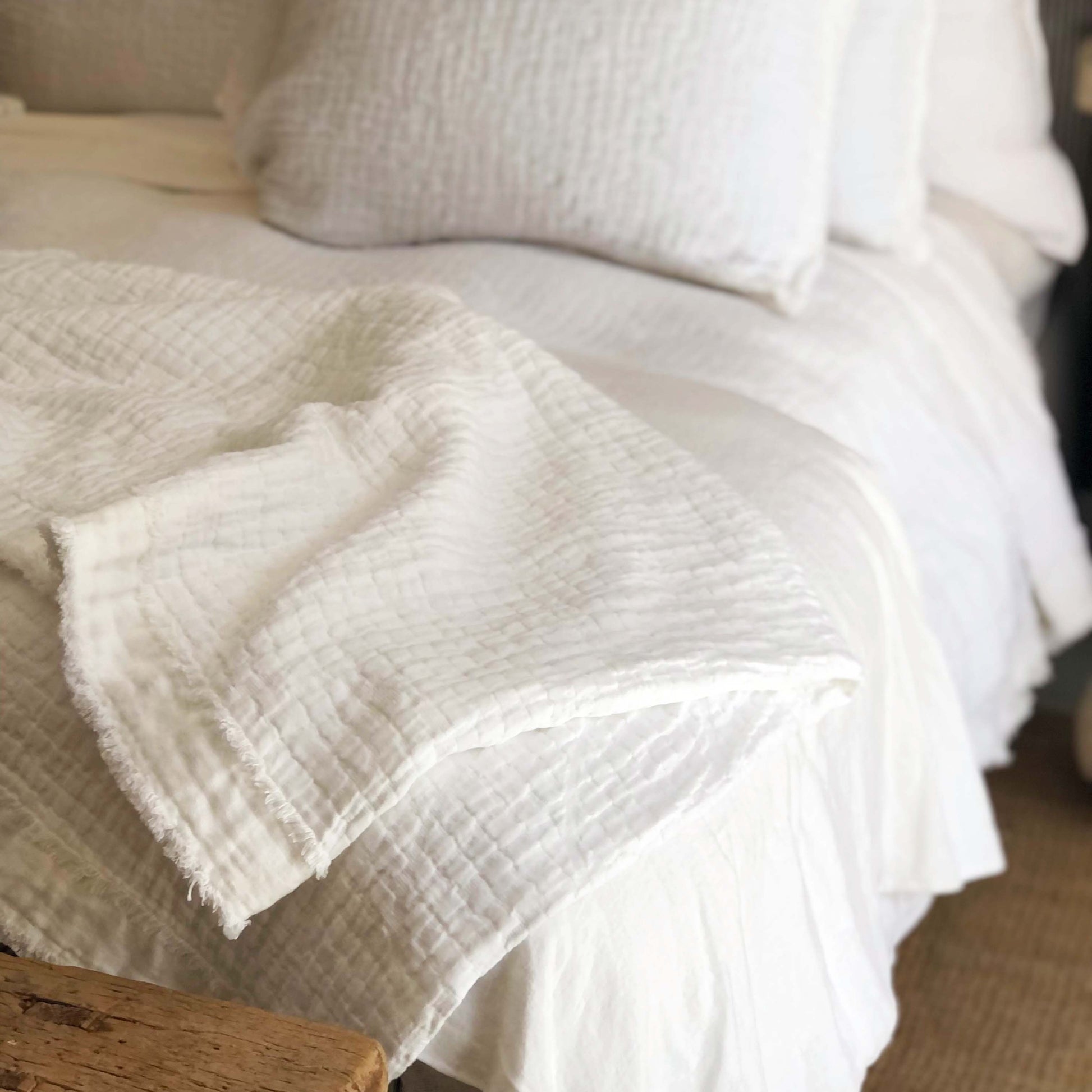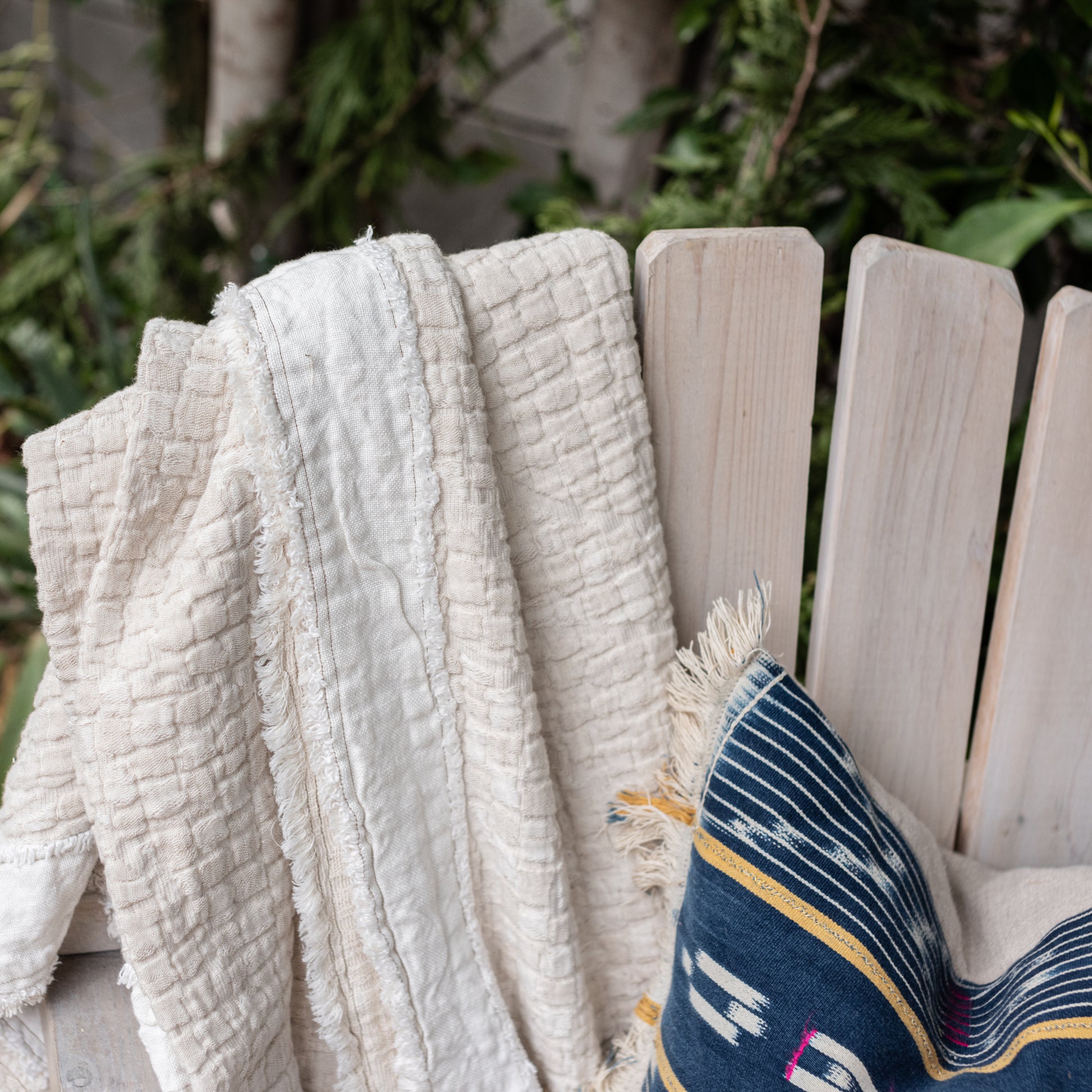 The Merci oversized throw has a grain like pattern finished with an application of raw linen at the outside edges. It is part of our Tumbleweed Merci Collection... The look is modern and a little industrial but always classic. They are finished with a stone washed process, which gives them stain resistant properties and makes them completely safe to wash at home. We recommend washing weekly in cool water and in your dryer at low heat.