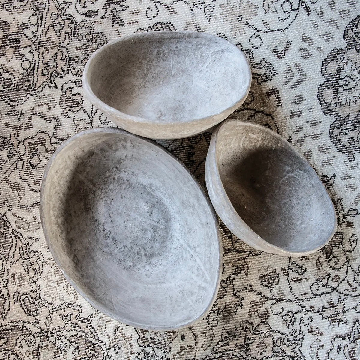 With an off-white color and egg-like shape, this paper mache bowl is great to fill with stylish ornamental balls or display on a shelf to tuck away light accessories.