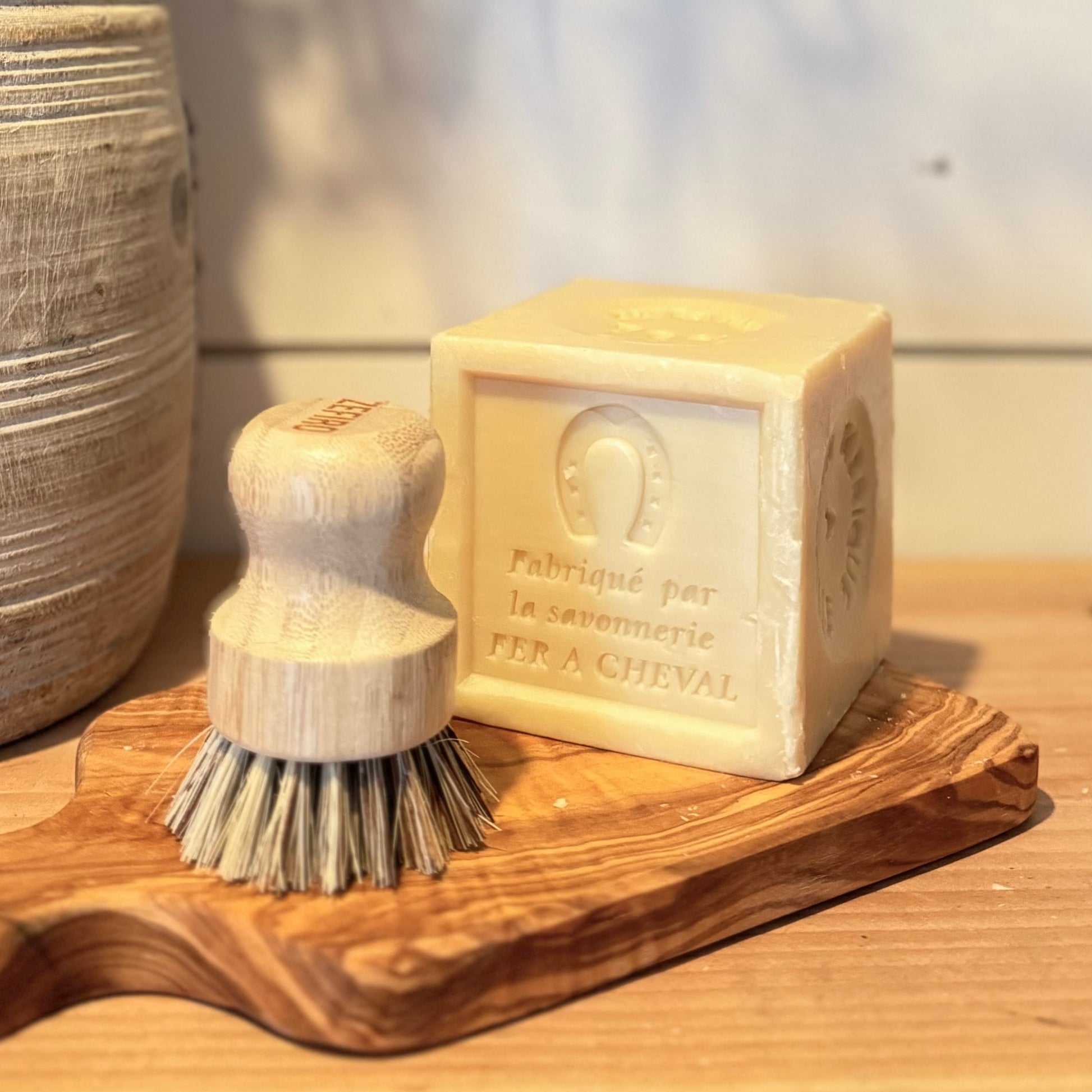 This household soap works well with a bamboo dish brush to sustainably clean your dishes, pots and pans. Clean counters and surfaces by rubbing a wet towel and apply. With its refined rustic look, this soap looks more like beautiful home decor than cleaning supply.