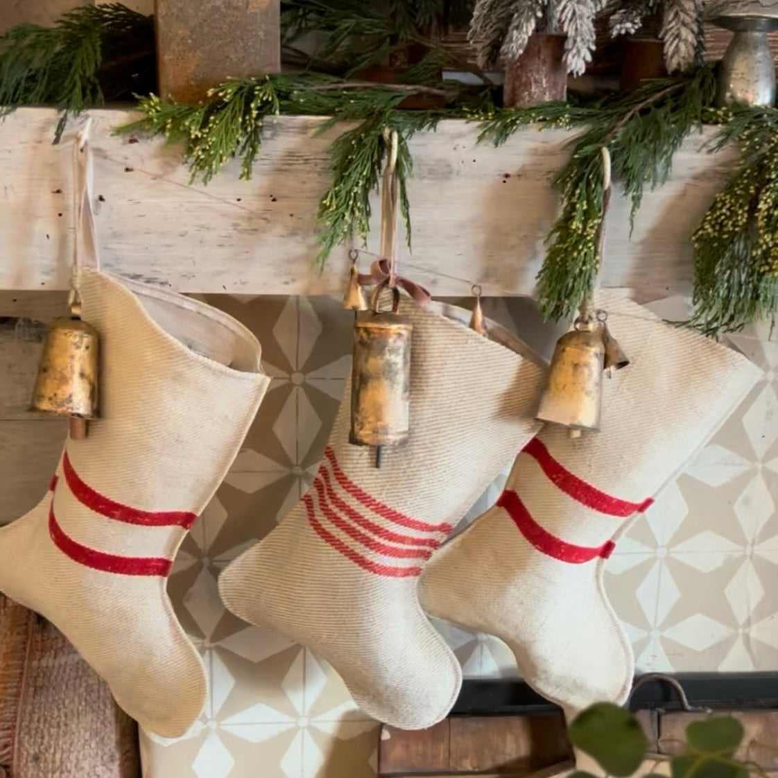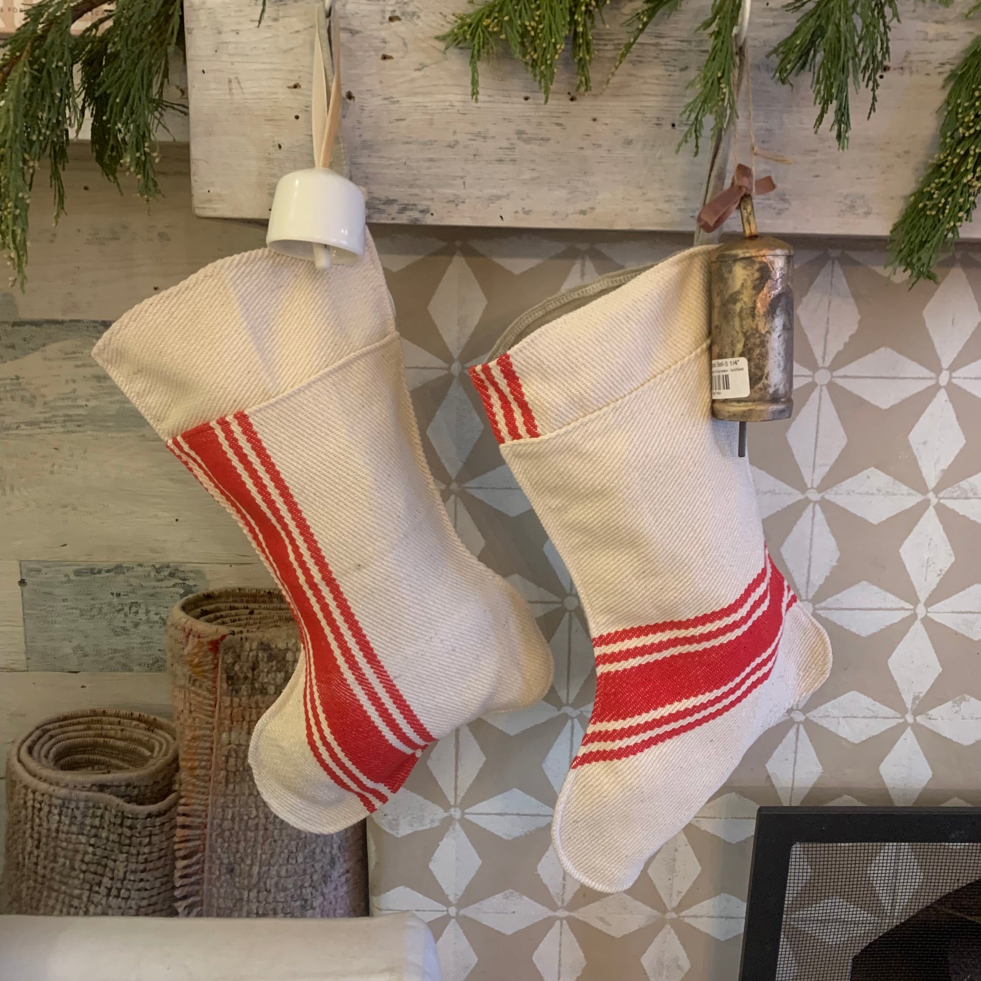 Grain de sac Christmas stockings...bring an old fashioned Christmas feel to your mantel!