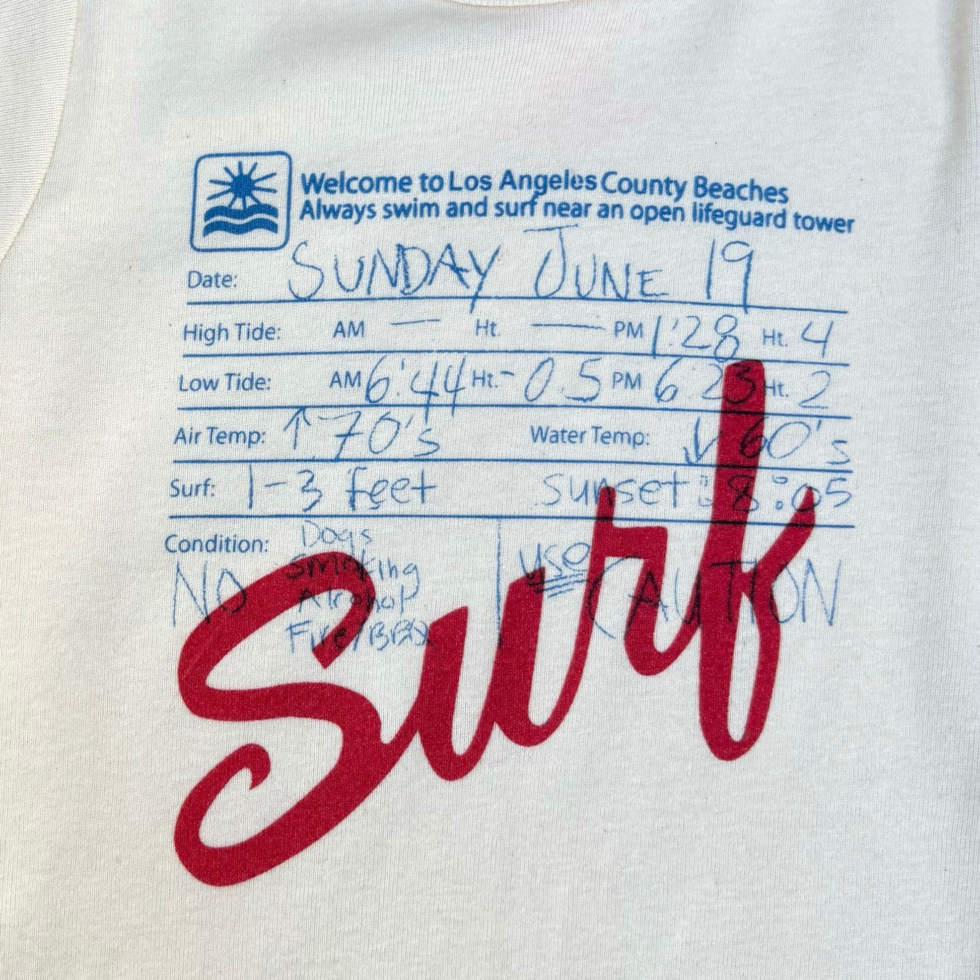 The tide board is full of important information for surfers and beach goers alike. Enjoy the beach and please don’t let those sea birds scatter your pinic to the winds. 100% organic cotton. Natural. Soft and comfy tag-less apparel. Designed in Venice California.