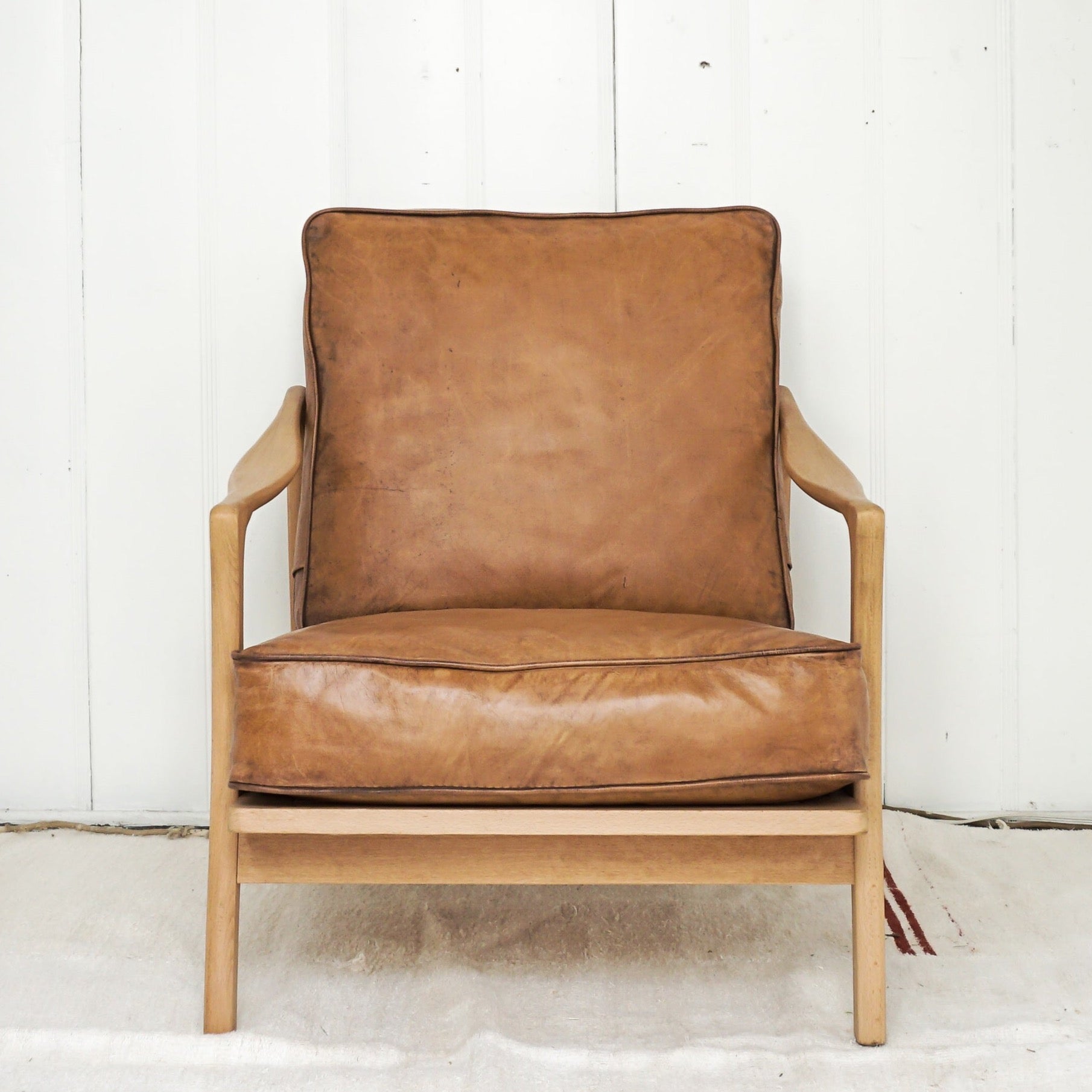 The Crosby is our newest mid-century modern find. The clean, simple yet elegantly shaped lines of the light wood frame are perfectly paired with the two cozy leather square cushions. It is one of the most stylish modern accent chairs we have come across and we can't even begin to describe how comfortable it is!