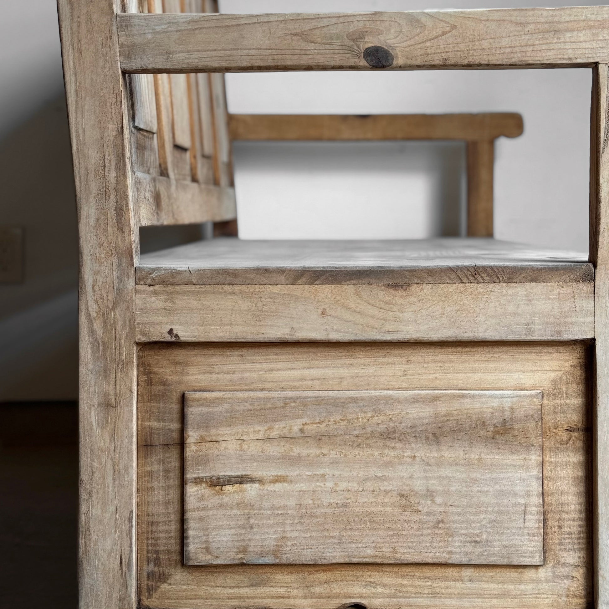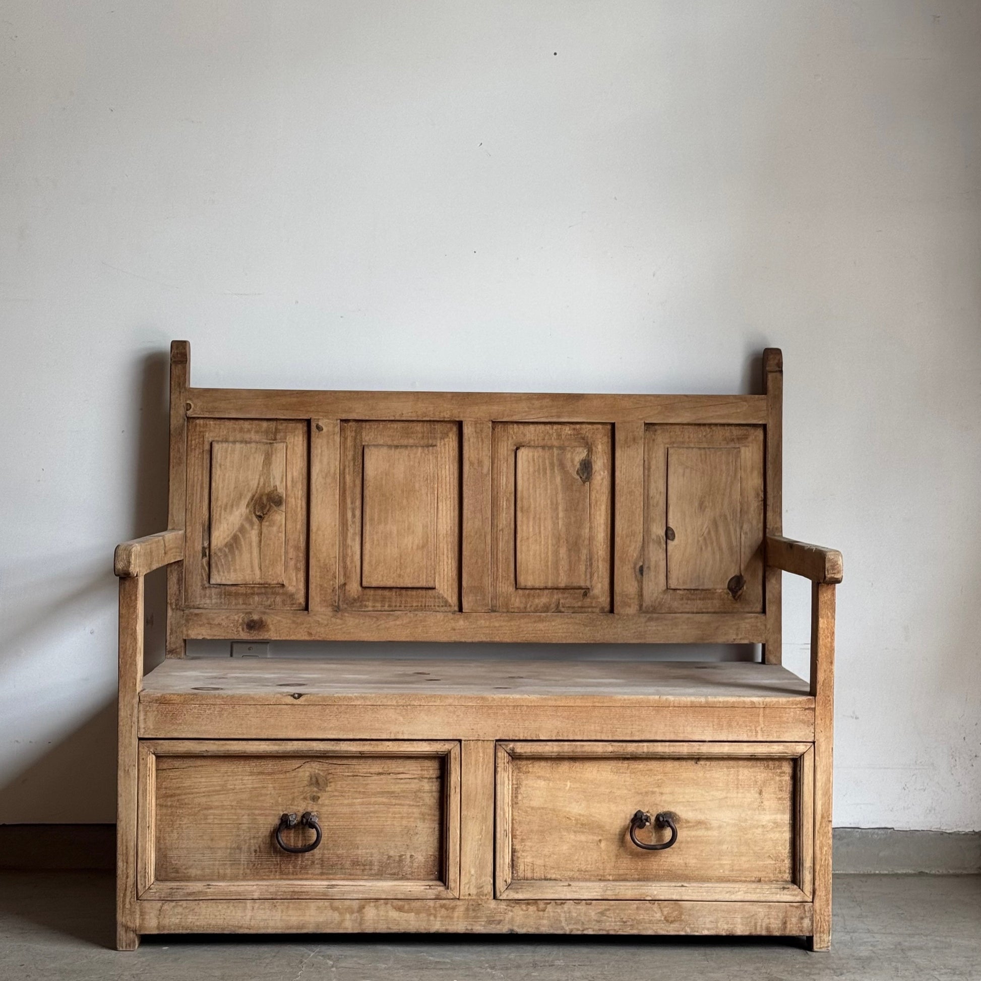 Made in Mexico, this rustic bench has heart and two convenient storage drawers!