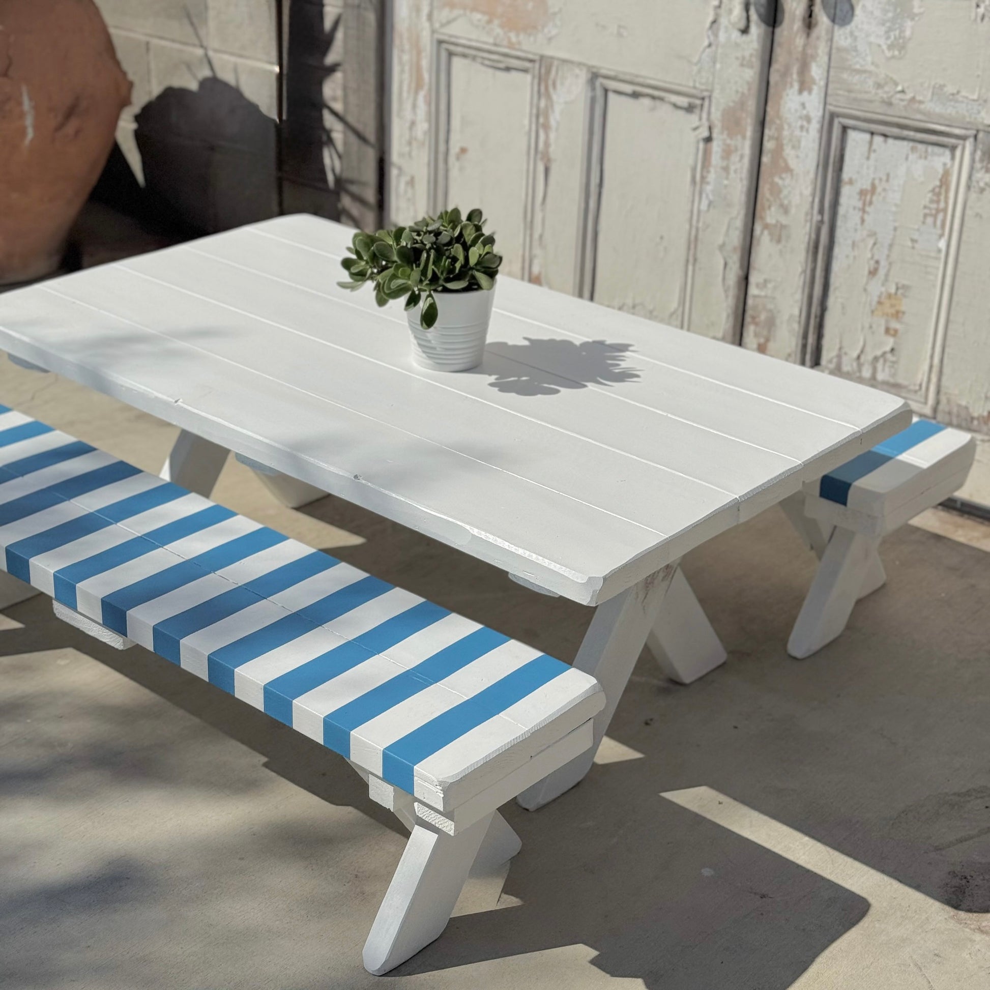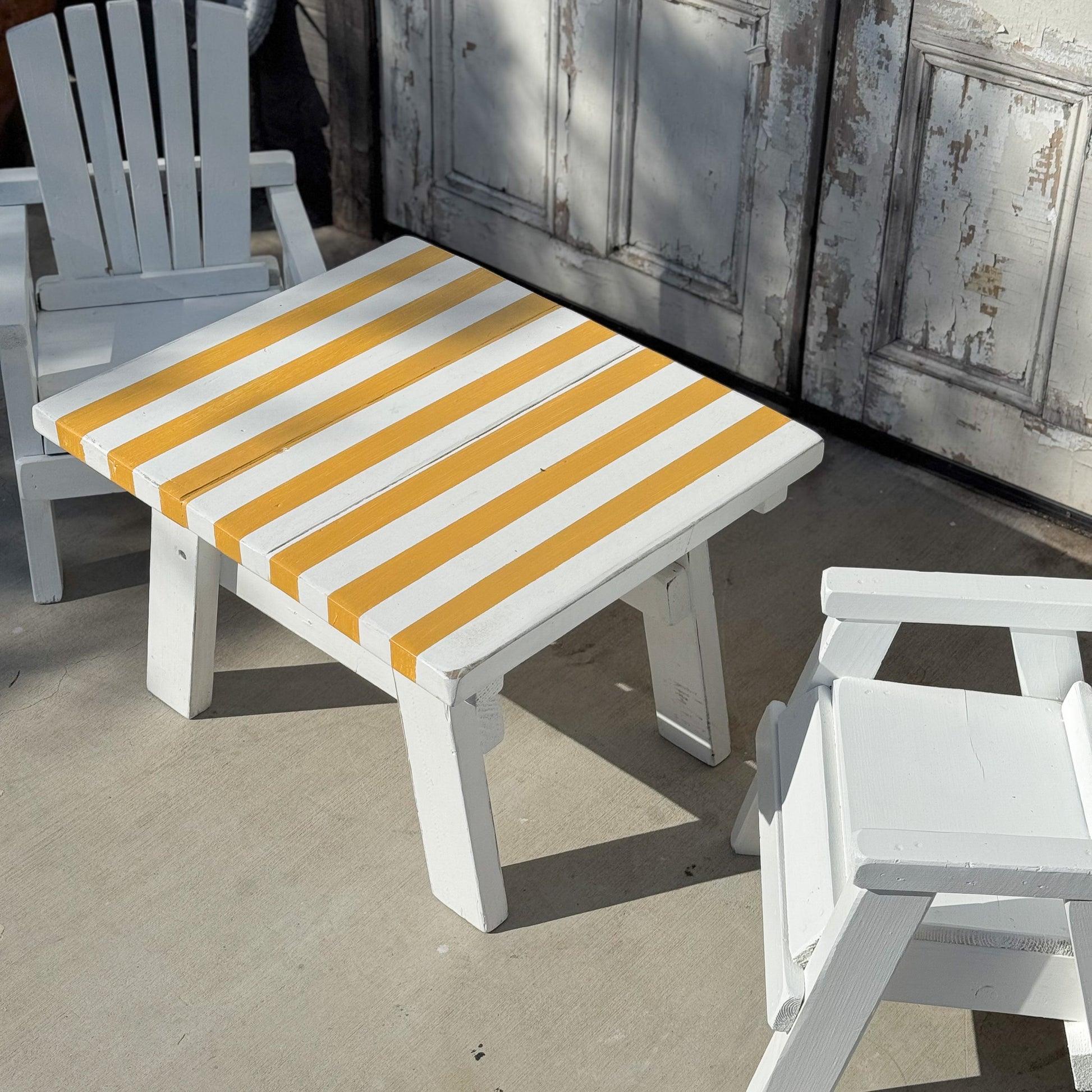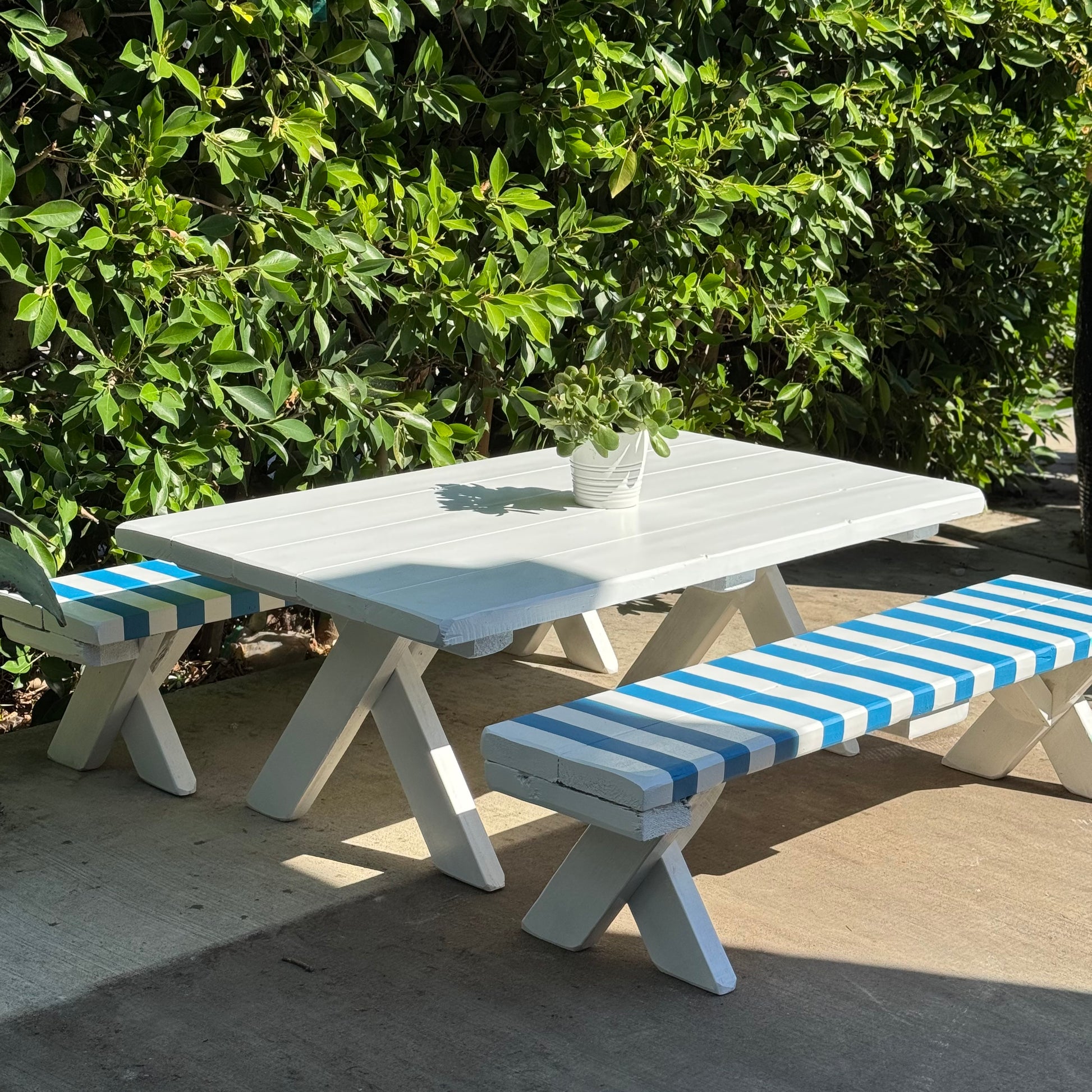 Make outdoor time for the kiddos extra snappy with our new Parton Collection, colorful takes on our kid's patio furniture. Choose from the picnic table and benches, or the square table and chairs.