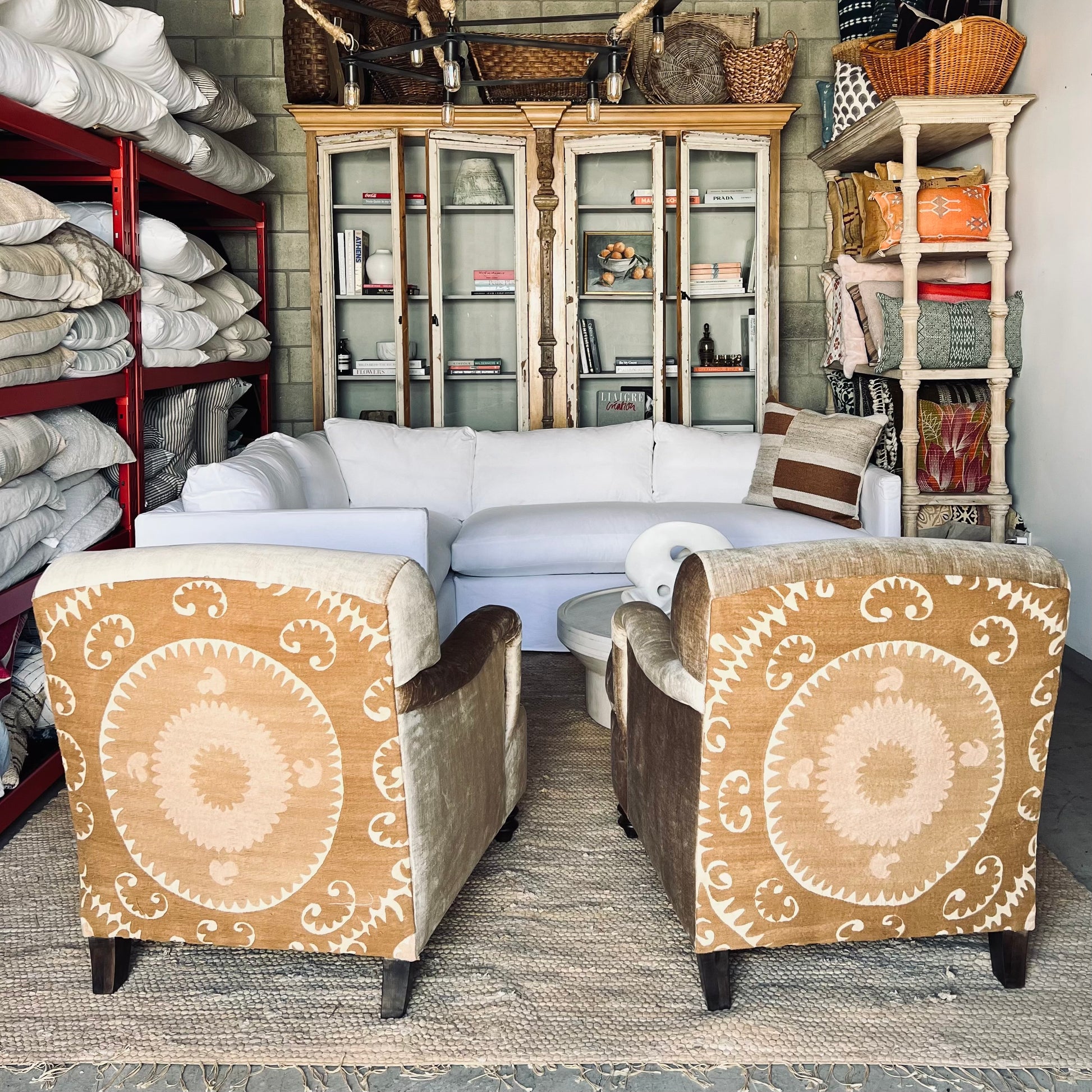 *Suzani fabric back, taupe velvet body