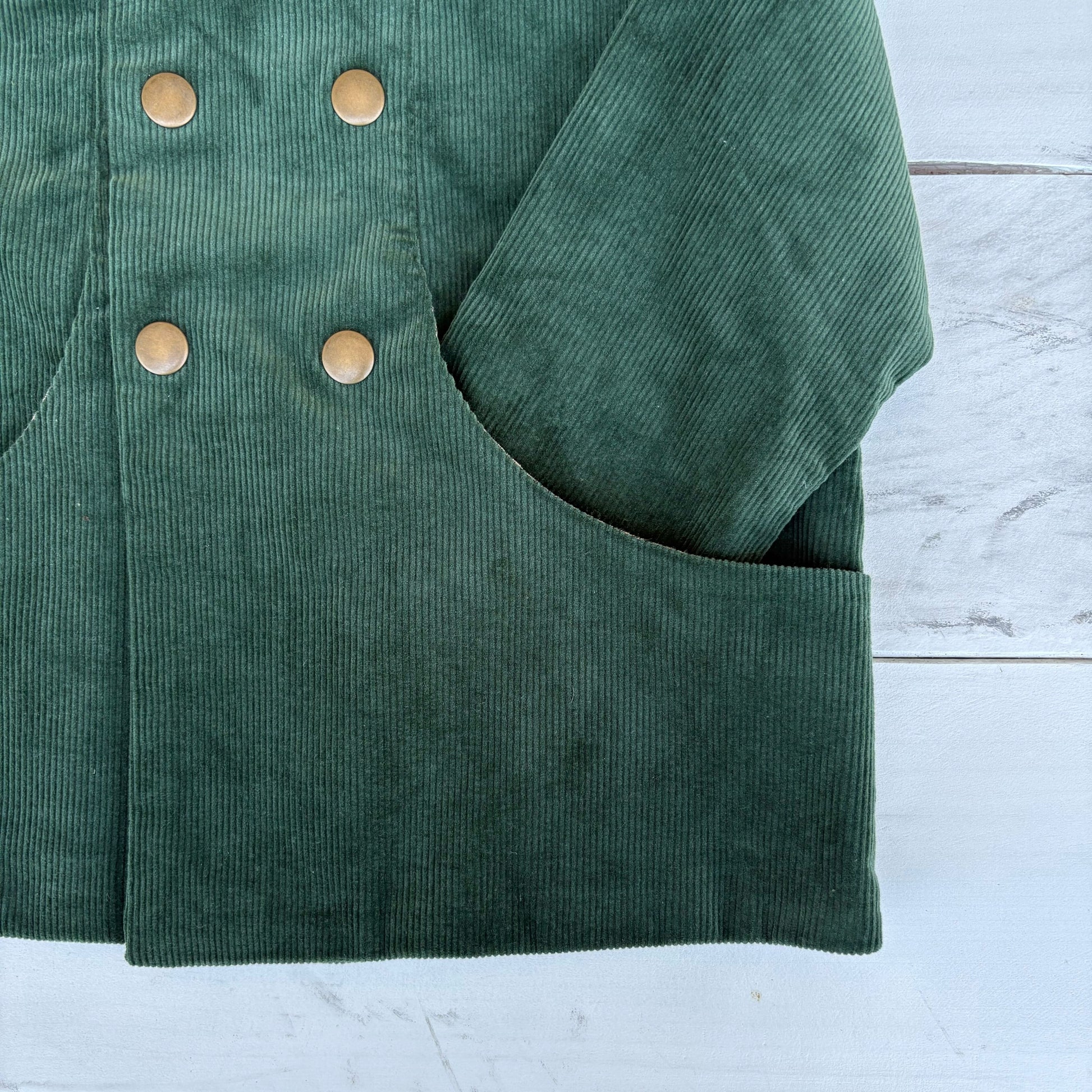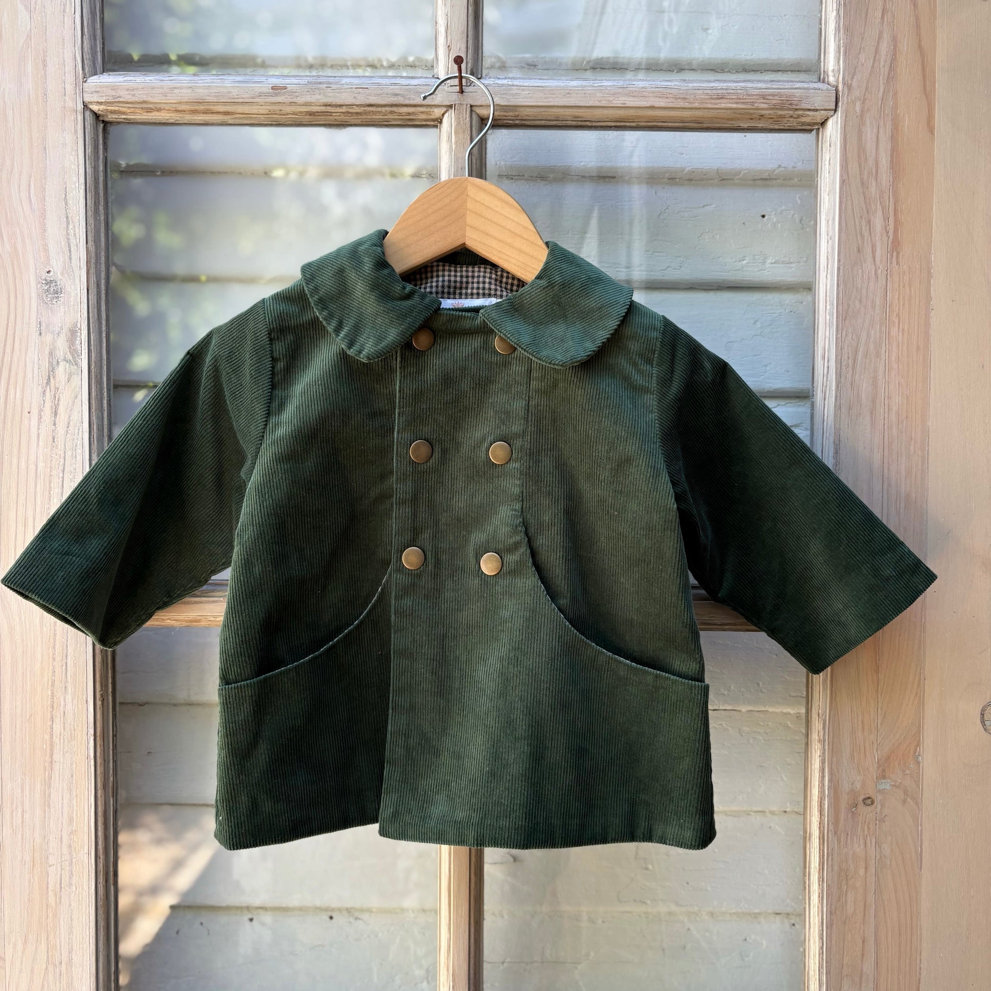 Durable and stylish vintage-inspired coat with a timeless design. Features a classic Peter Pan collar and large front pockets for keeping hands warm and storing treasures. Fully lined in coordinating brushed gingham cotton.