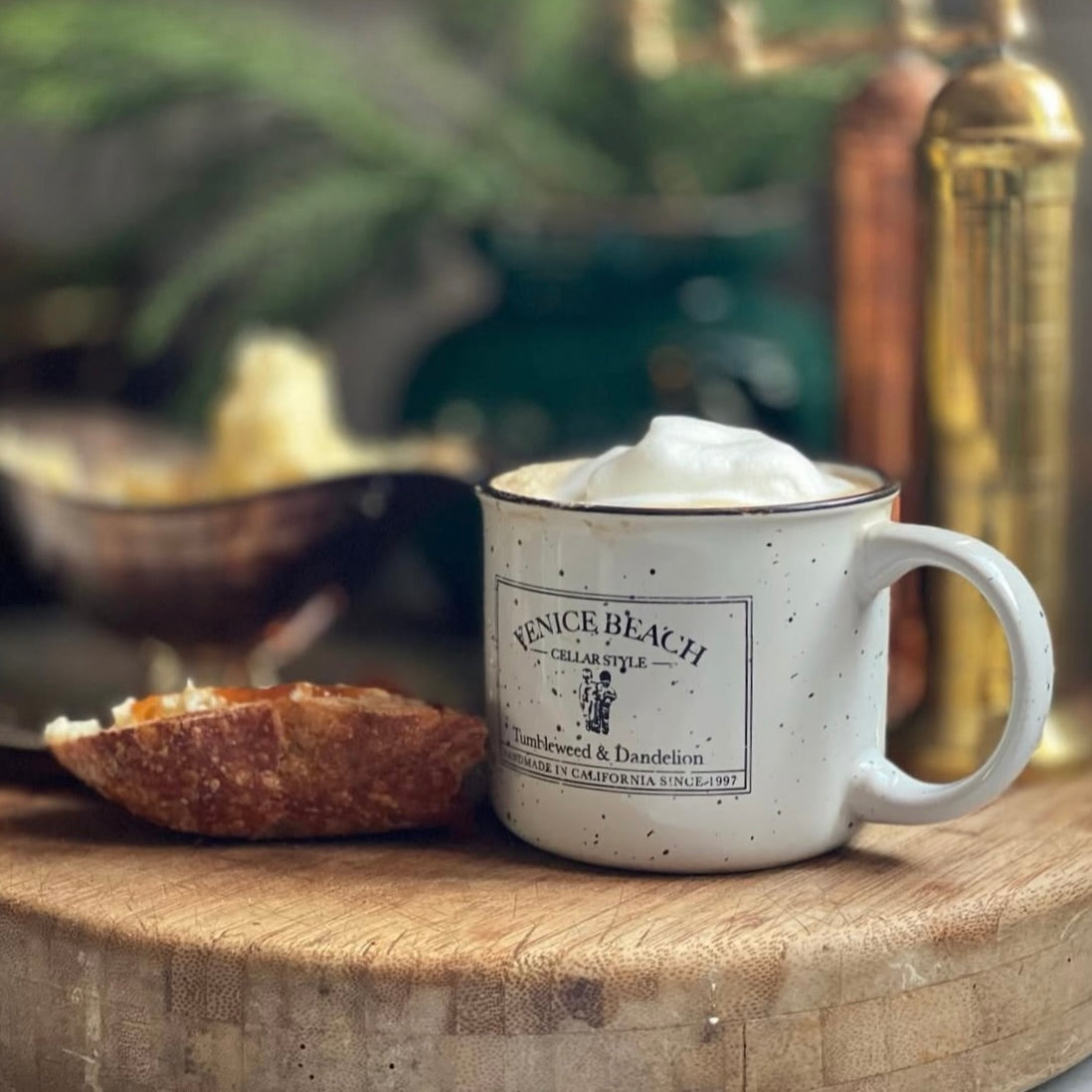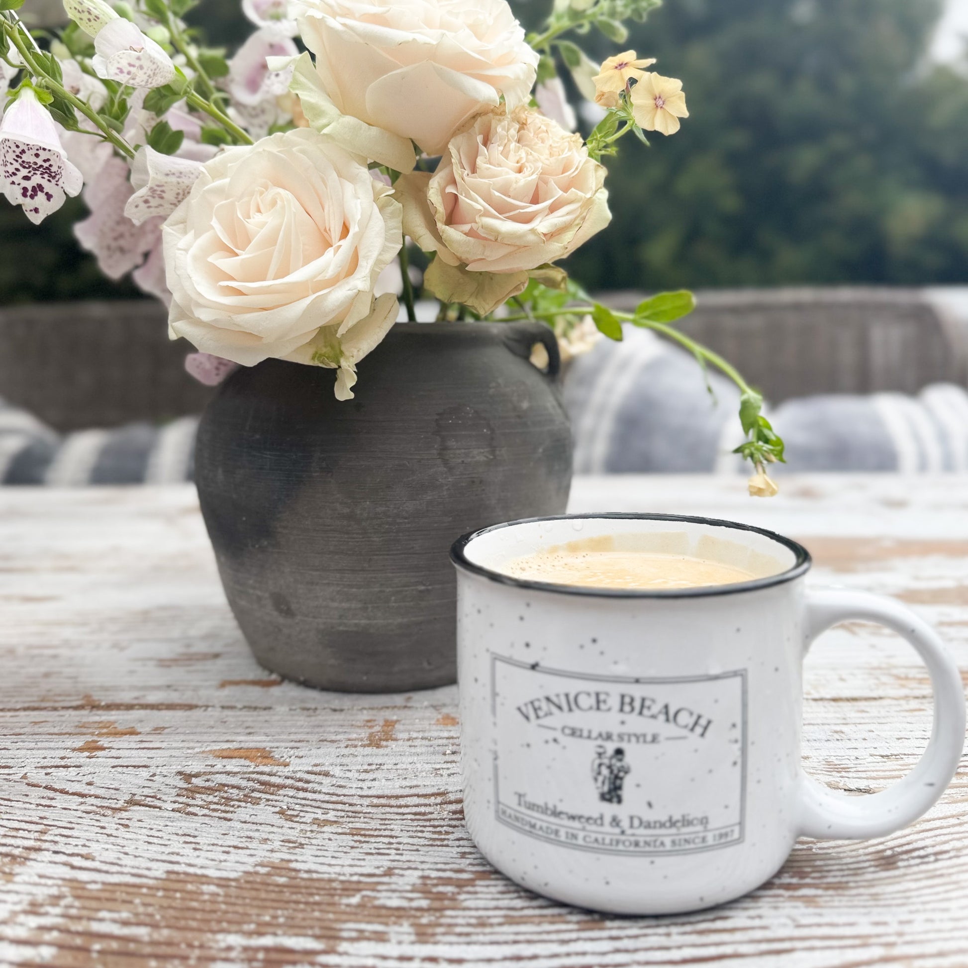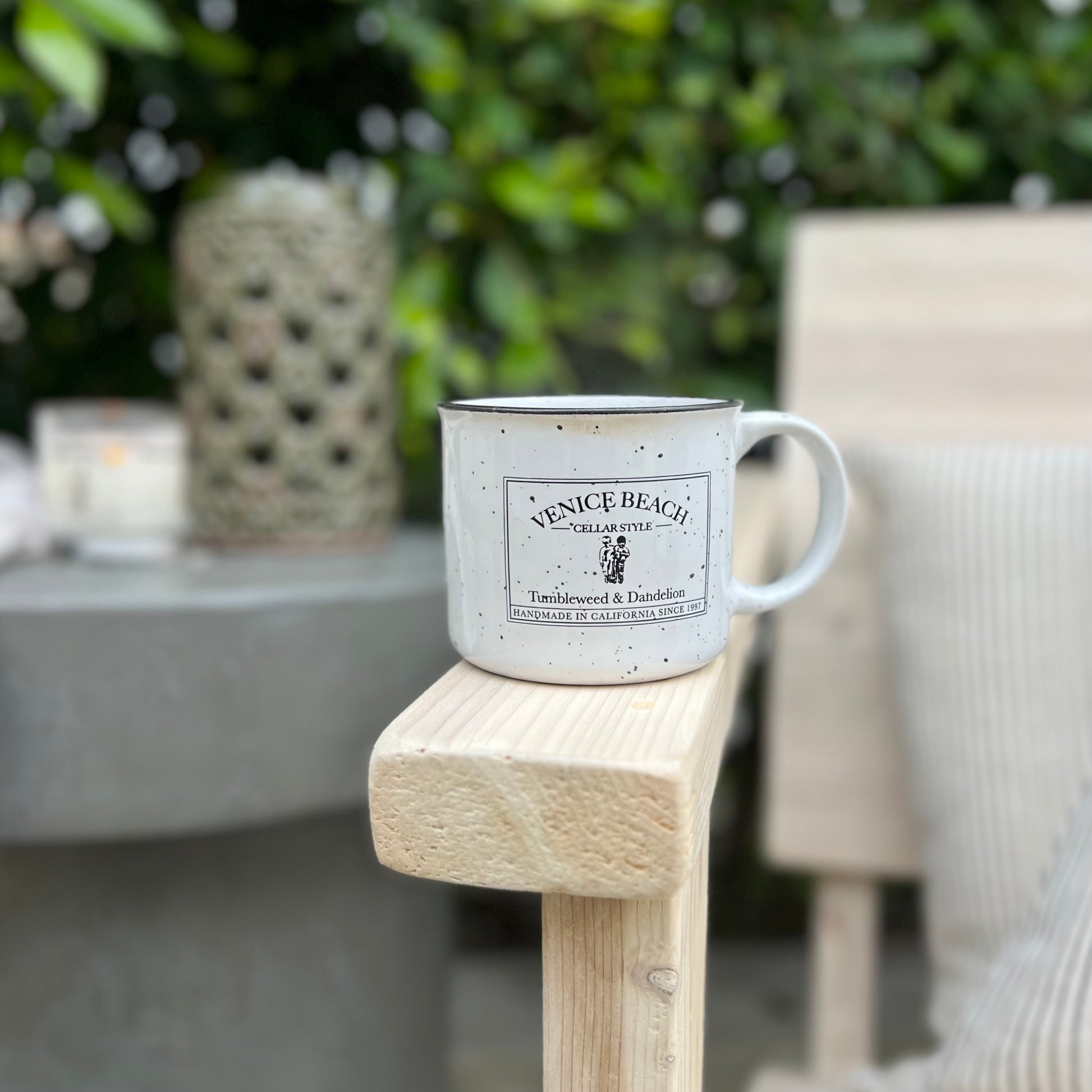 We think you will love our brand new 13 oz. ceramic campfire mugs as much as we do! Made in the style of old fashioned tin cups in white ceramic with a unique speckled finish and our Venice Beach Cellar Style logo. Just in time for hot Cocoa season! Delicious!