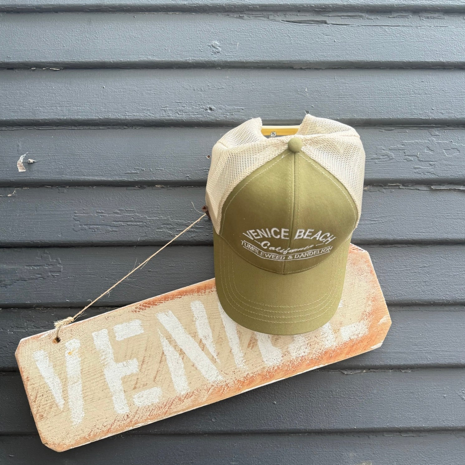 Cool and environmentally conscious are two top descriptors of our Venice Beach community and we wanted to make a hat that encapsulated the same things. This trucker cap is stitched with the name of our beloved neighborhood and made with recycled polyester.